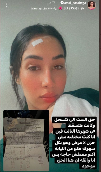 تفاعلت آمال أبو المجد مع النشطاء وأكدت أن الواقعة تعود إلى 5 أيام مضت، وأنه لم تتمكن من الإعلان عنها بسبب تعرضها لنزيف وكدمات متفرقة بالجسم آثار ضرب زوجها لها.