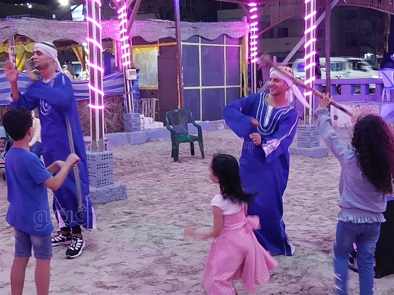 وكذلك تواجد ألعاب وأغاني الأطفال الشهيرة، وسط تواجد كبير من الأهالي وزوار المدينة، في حالة من الفرحة بين الجميع.