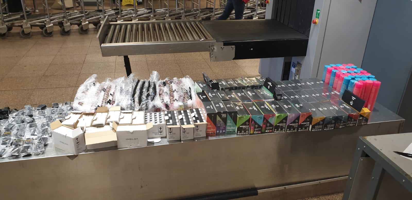 أحبطت سلطات جمارك مطار القاهرة الدولي، محاولة تهريب كبرى لكميات غير طبيعية من التليفونات والبطاريات والشواحن والسجائر الإلكترونية وزيوتها ومستحضرات التجميل، وتم تحرير محضر بالواقعة.