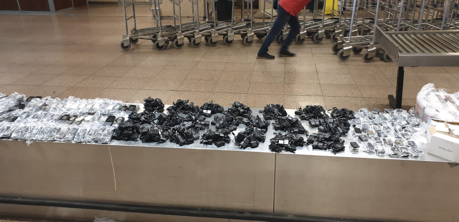 افتكره شارع عبد العزيز.. ضبط كميات غير مسبوقة من الهواتف المحمولة بمطار القاهرة | صور