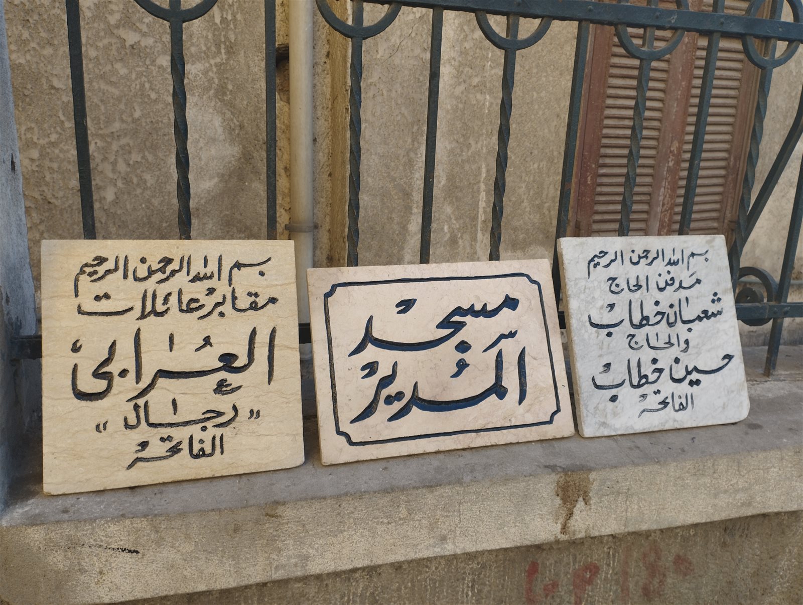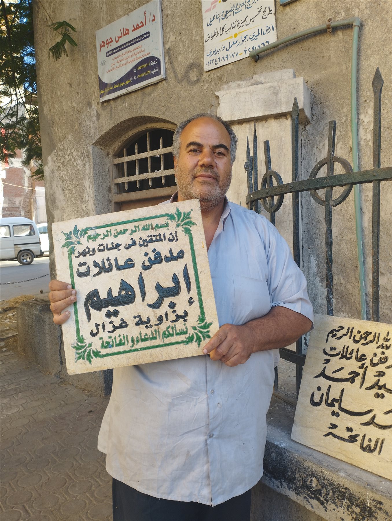 حيث يبدأ من خلال تجهيز القطعة الرخامية المستهدفة وثم استخدام الازميل والمطرقة والشاكوش حتي تبدأ عملية النحت علي الرخام ليظهر الاسم المراد نحته أو تلوينه وبعدها يقوم بتلوينها بالفرشاة المخصصة باستخدام اللون الاسود.