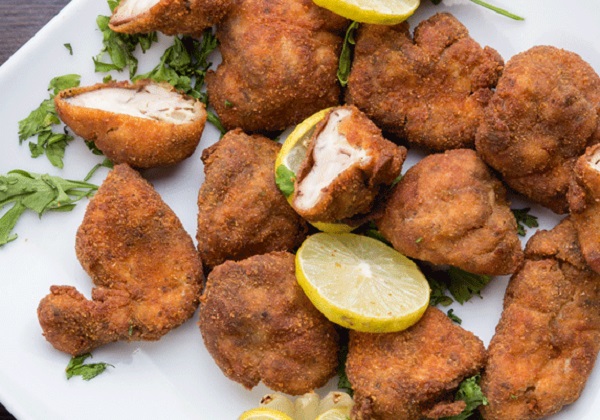 - نخرج المخ من التتبيلة ونضعه في الدقيق ثم البيض ثم البقسماط.