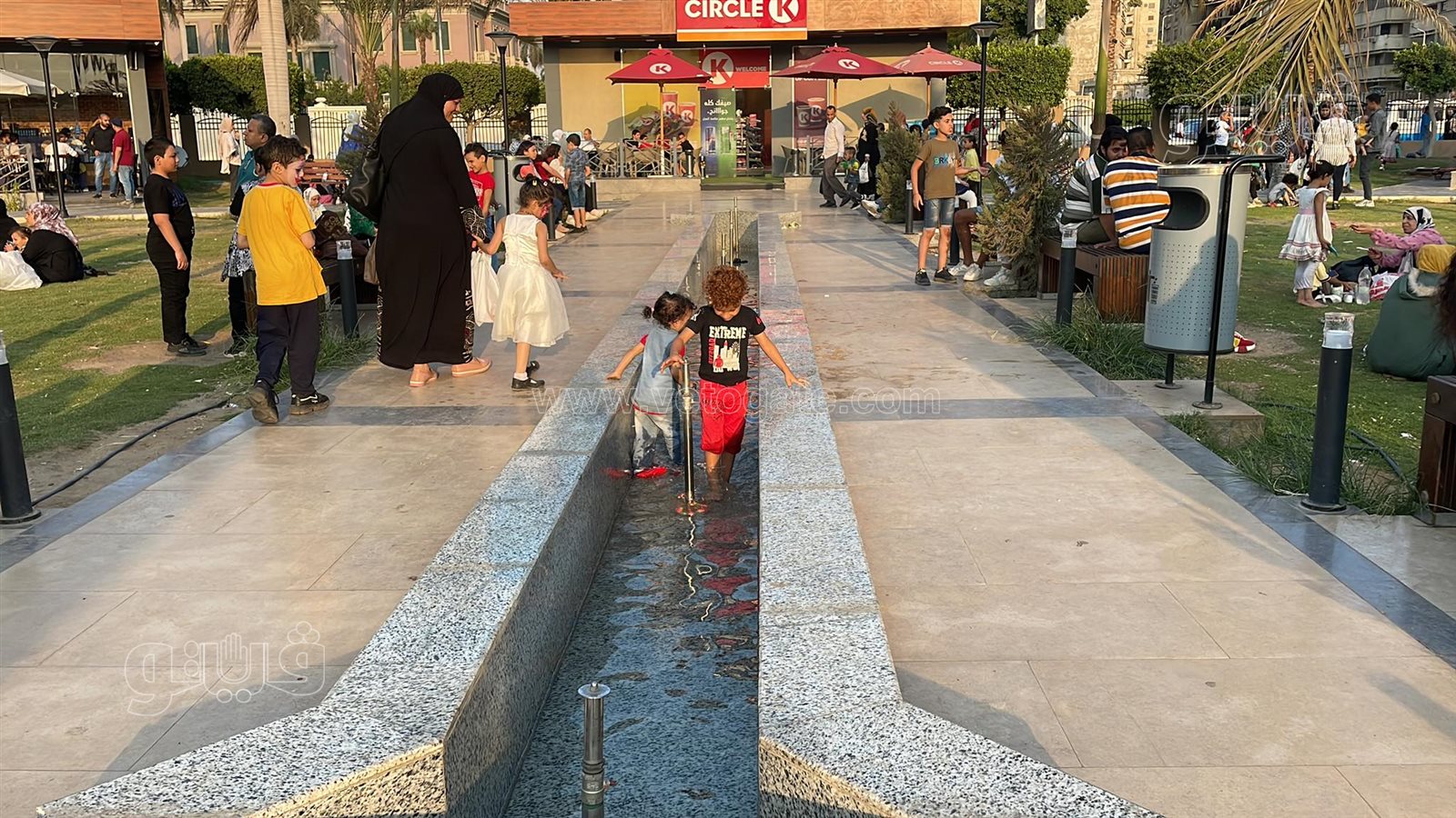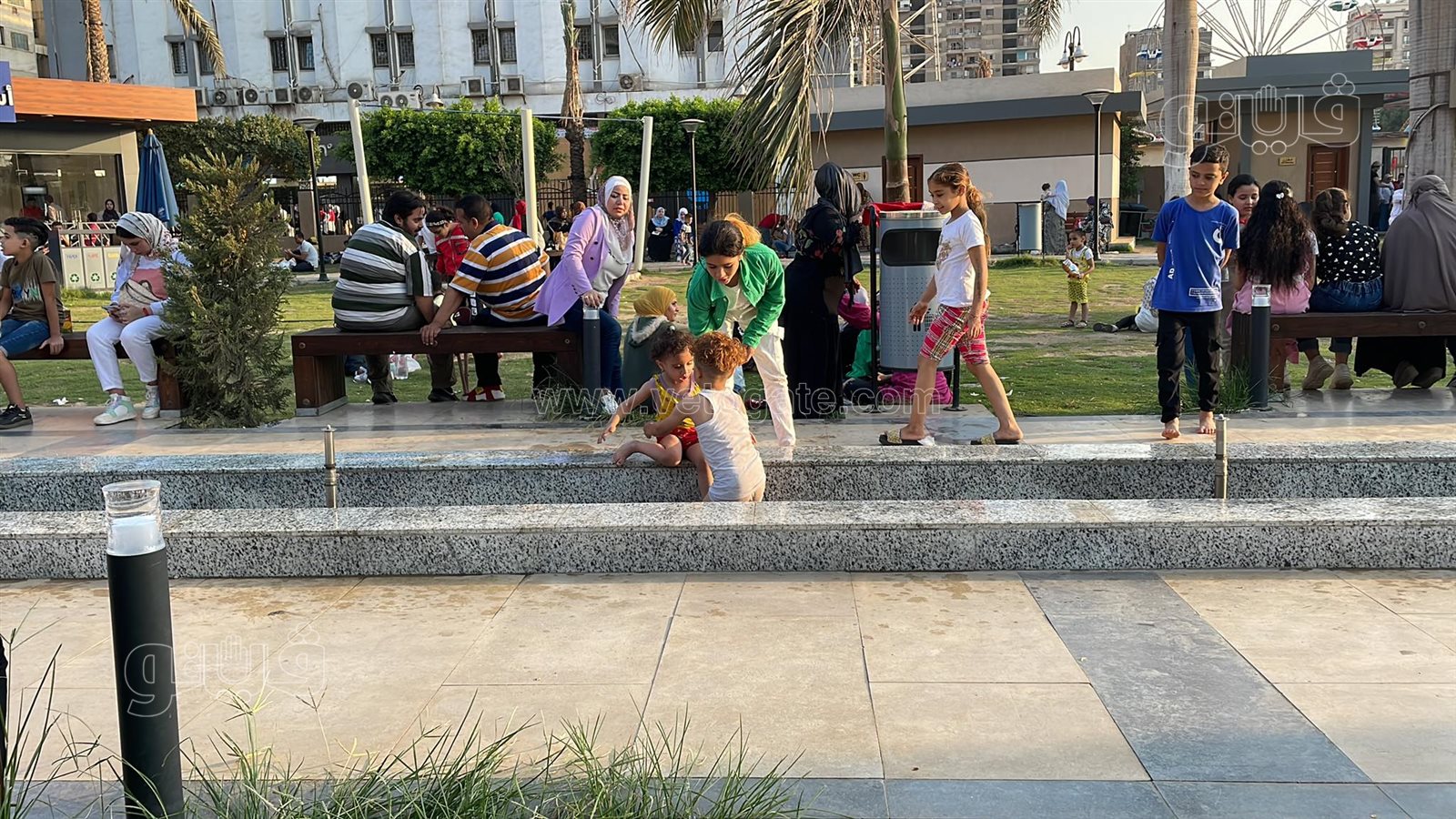 جذبت نافورة متنزه الطاهرة بمنطقة سراي القبة، الأطفال المتواجدين بالمتنزه اليوم الاثنين في ثالث أيام عيد الأضحى المبارك.
