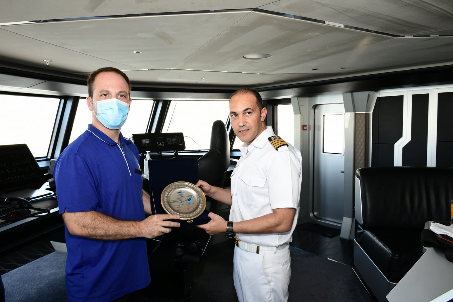 وفقا للبروتوكول المتبع من قبل الهيئة وفي ضوء حرصها على تشجيع عبور السفن واليخوت السياحية والارتقاء بالخدمات المقدمة لهم، أناب الفريق أسامة ربيع رئيس هيئة قناة السويس القبطان شادي الصياد لتقديم درع الهيئة إلى قبطان اليخت كابتن Vasilis.