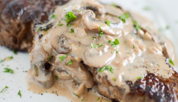 سخني ماء فى نفس المقلاه التى قمنا بتحمير اللحم بها ورشى رشه ملح خفيفه وقومى بإضافة الساور كريم او الزبادى المضروب بالليمون واتركيه يغلى ثم قومى بصب الصلصة على أعلى شرائح الحم