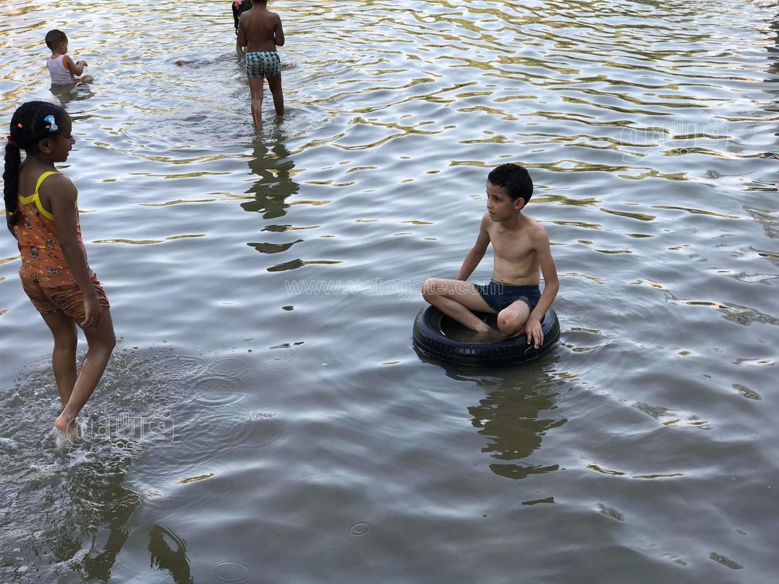 أقدم العديد من الأطفال، على الاستحمام بالملابس الداخلية في بحيرة الحديقة اليابانية بمنطقة حلوان، هربا من الحر، وذلك خلال احتفالهم برابع أيام عيد الأضحي المبارك.