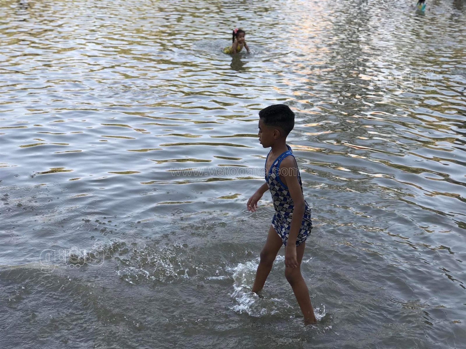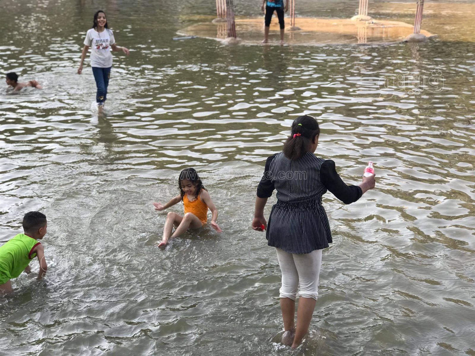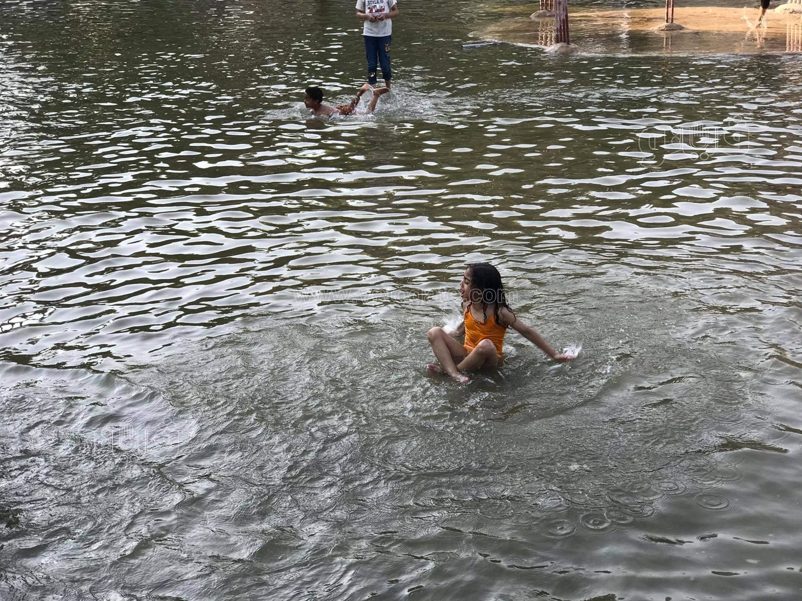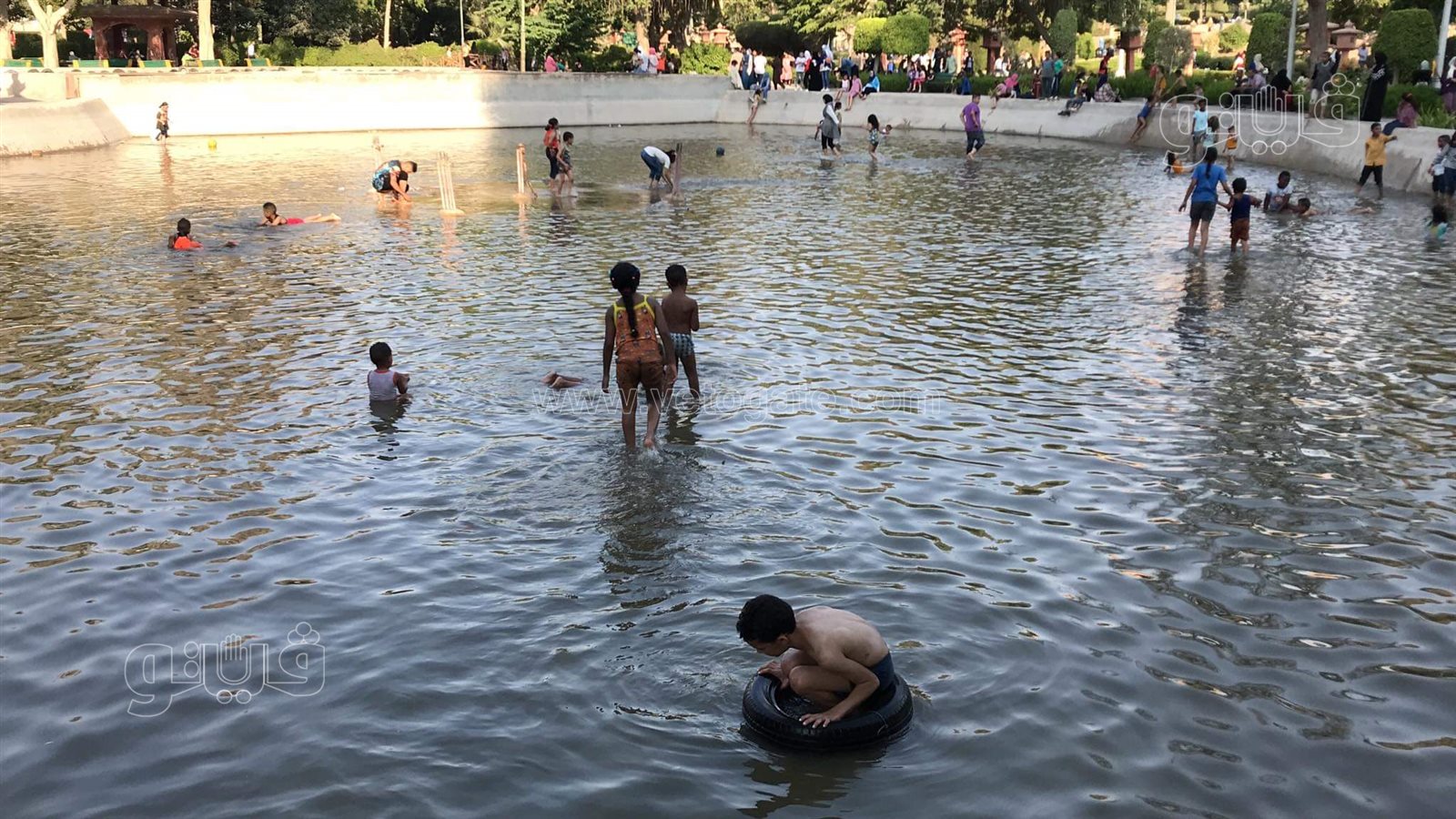 هربا من الحر.. استحمام الأطفال في بحيرة الحديقة اليابانية| فيديو وصور