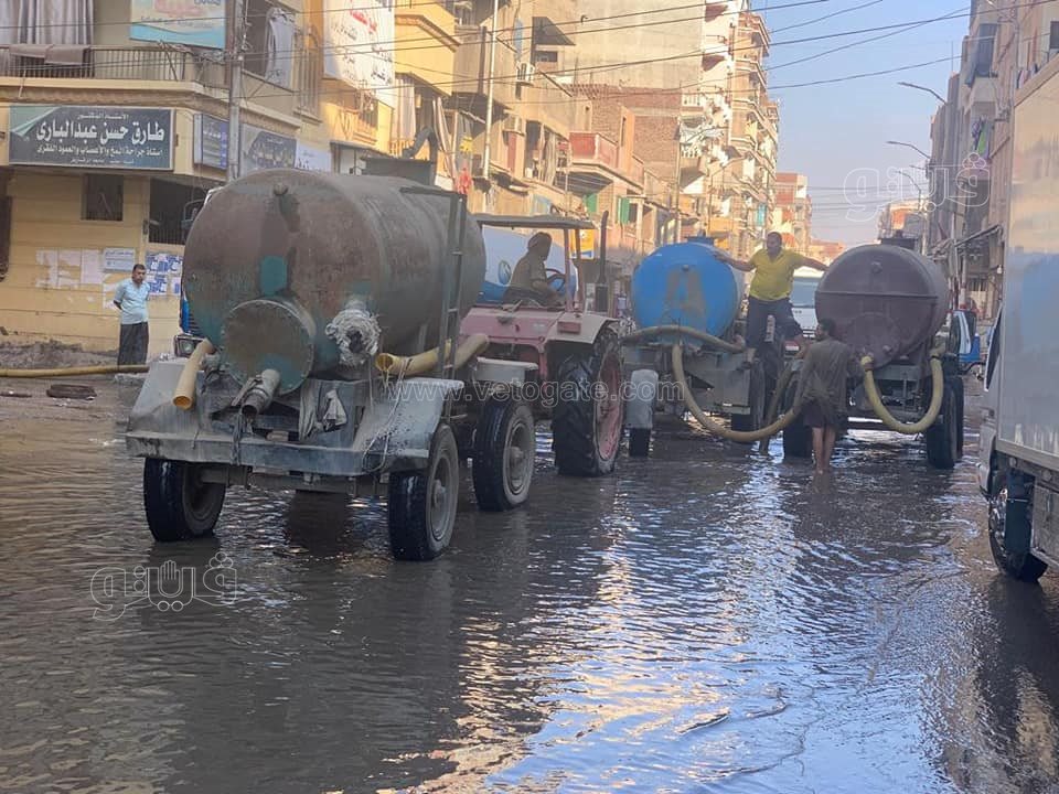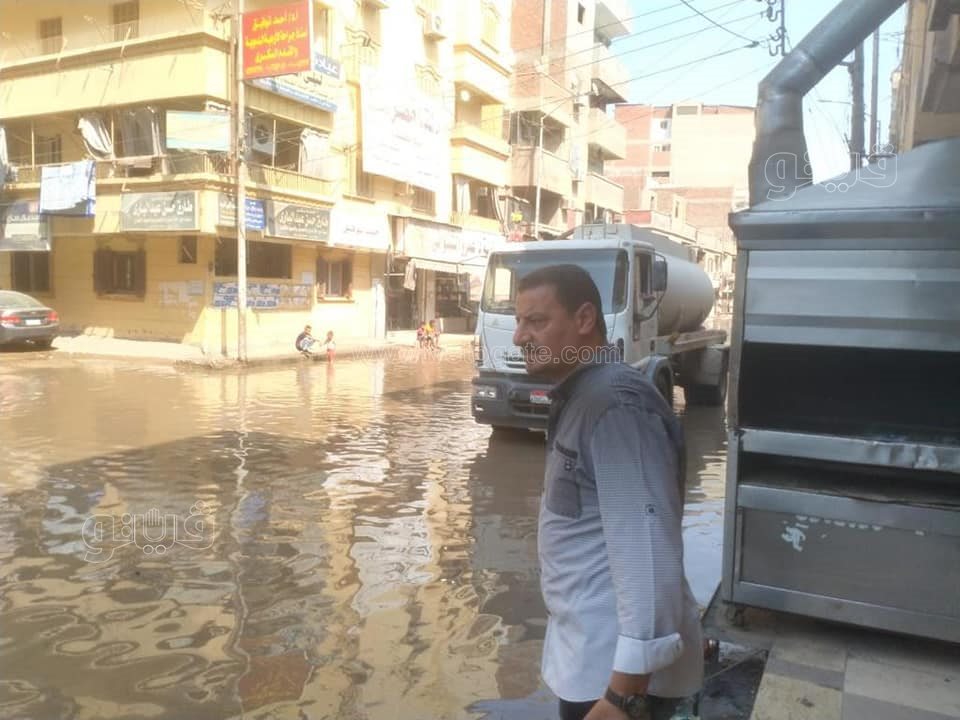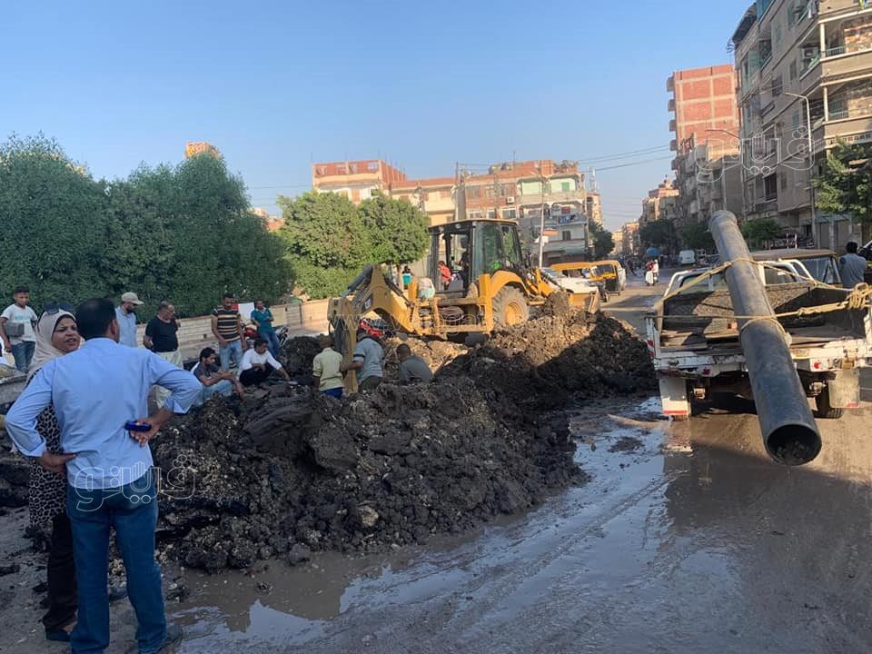 انفجار خط مياه رئيسي بأحد شوارع بلبيس بالشرقية.. وانقطاع المياه عن المنطقة|صور
