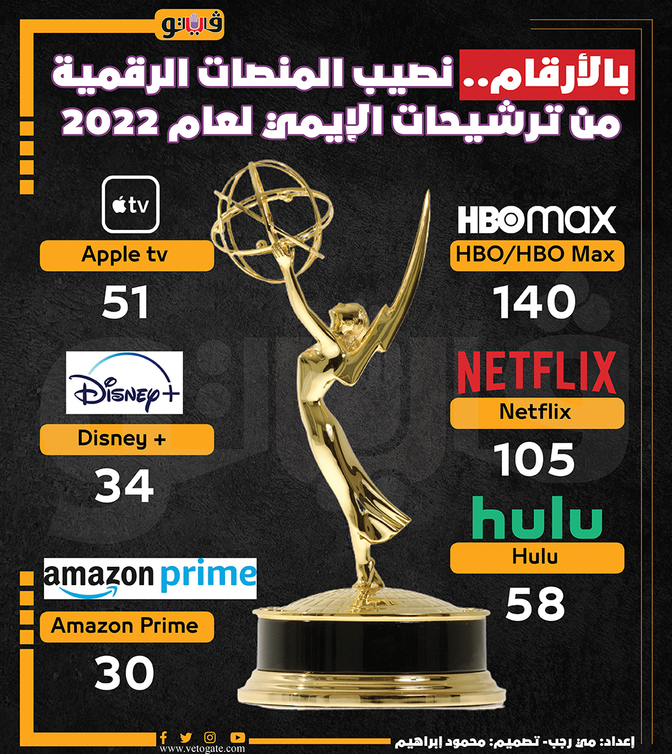 بالأرقام.. نصيب المنصات الرقمية من ترشيحات الإيمي لعام 2022 | إنفوجراف الثلاثاء 12/يوليو/2022 - 11:00 م 7/12/2022 11:00:24 PM الإيمي مى رجب شارك طباعة 18 حجم الخط شارك طباعة الإيمي العالمية ترشيحات الإيمي 2022 الإيمي 2022 اعلان الإيمي 2022