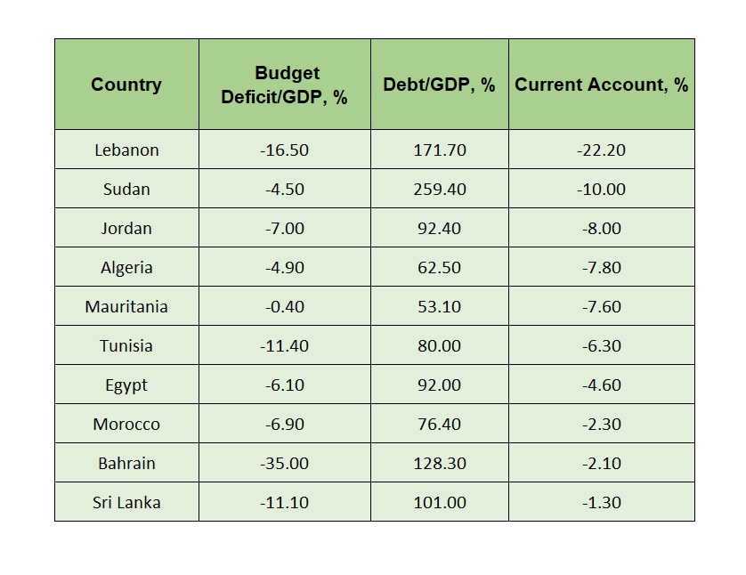 وفيما يلي قائمة بدول عربية لديها عجز في الحساب الجاري بحسب بيانات موقع tradingeconomics: