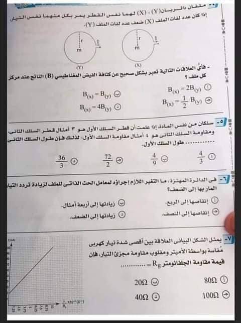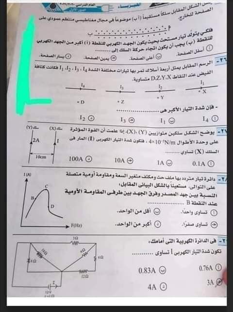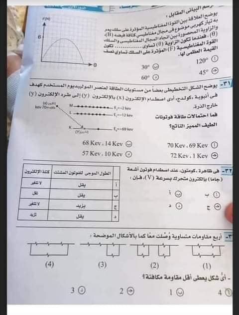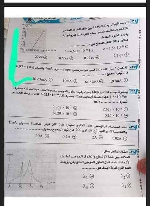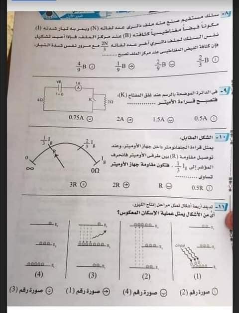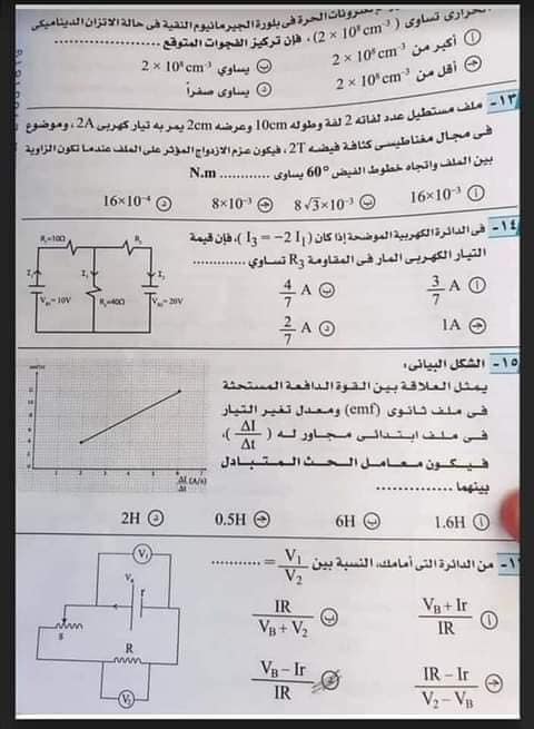 امتحان الفيزياء زمن الإجابة من 9 - 12 للشعبة العلمية.