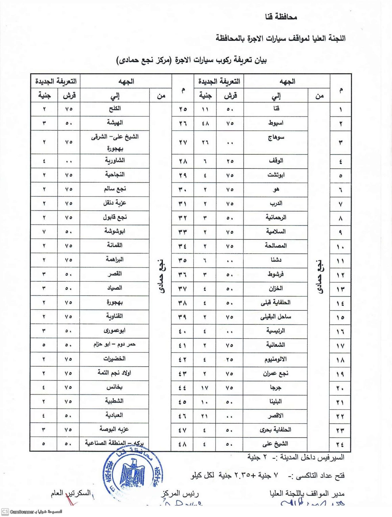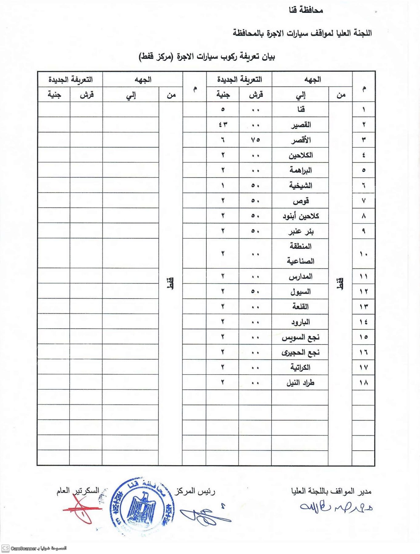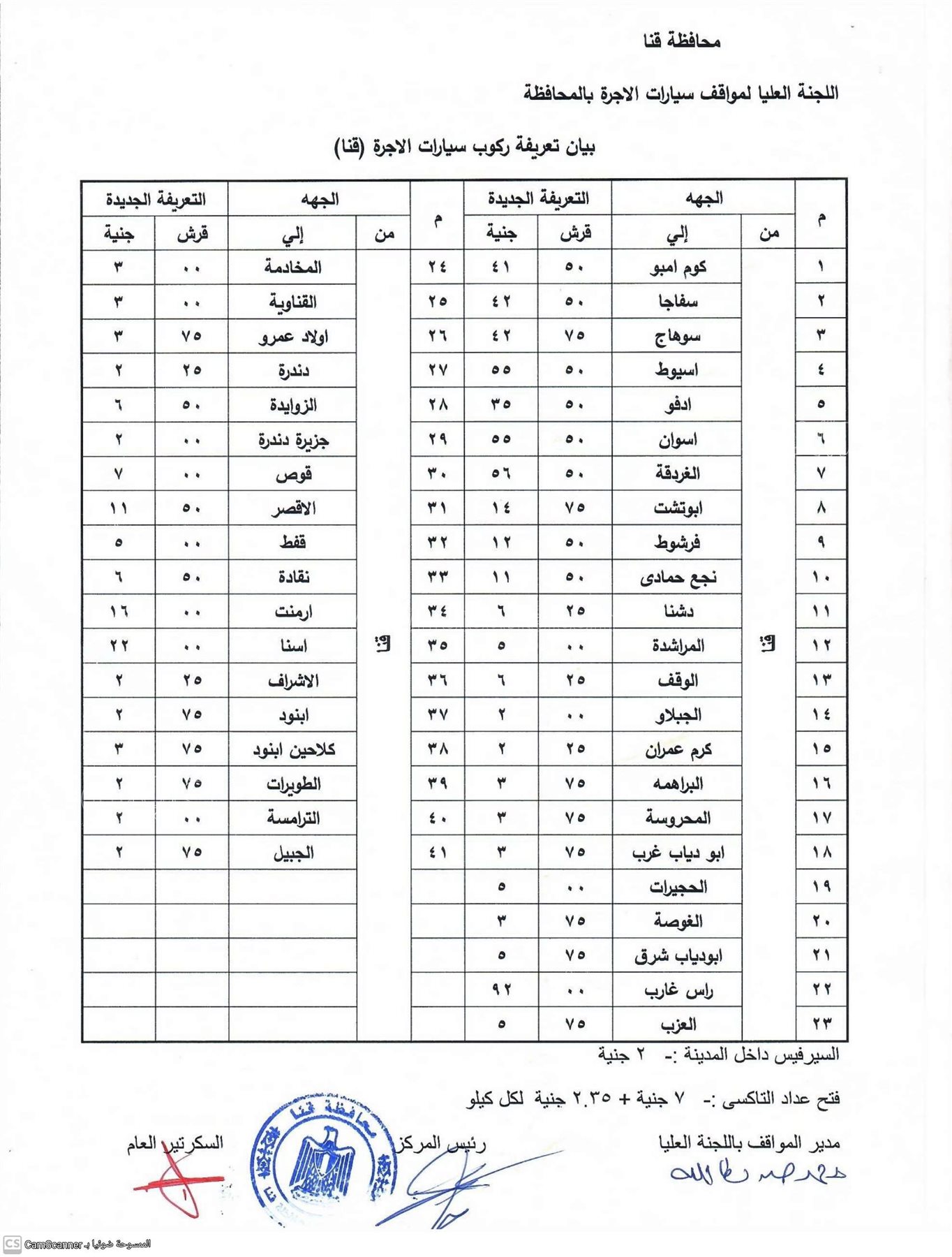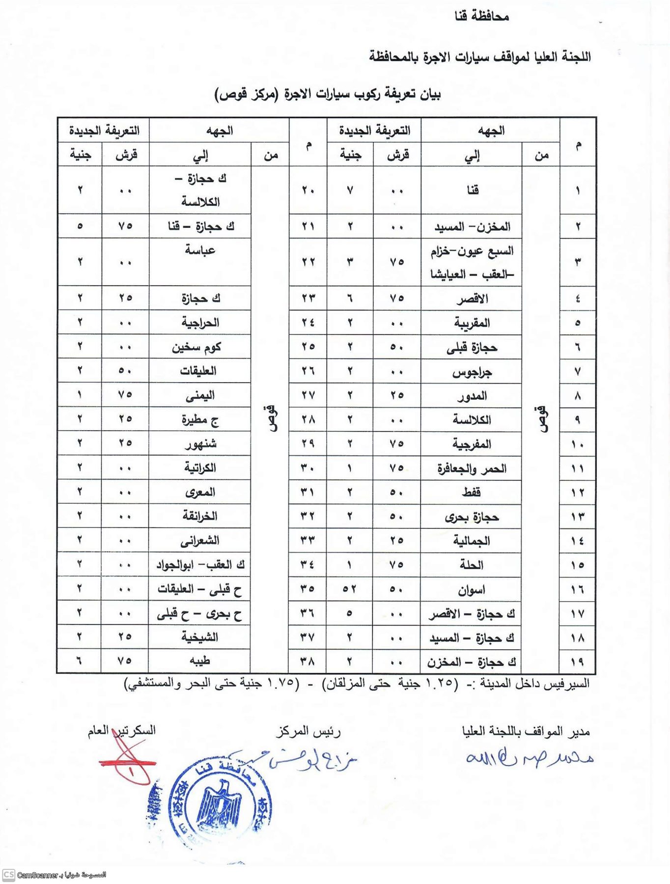 أعلنت وزارة التنمية المحلية الأسعار الجديدة لتعريفة الركوب بمحافظة بقنا.