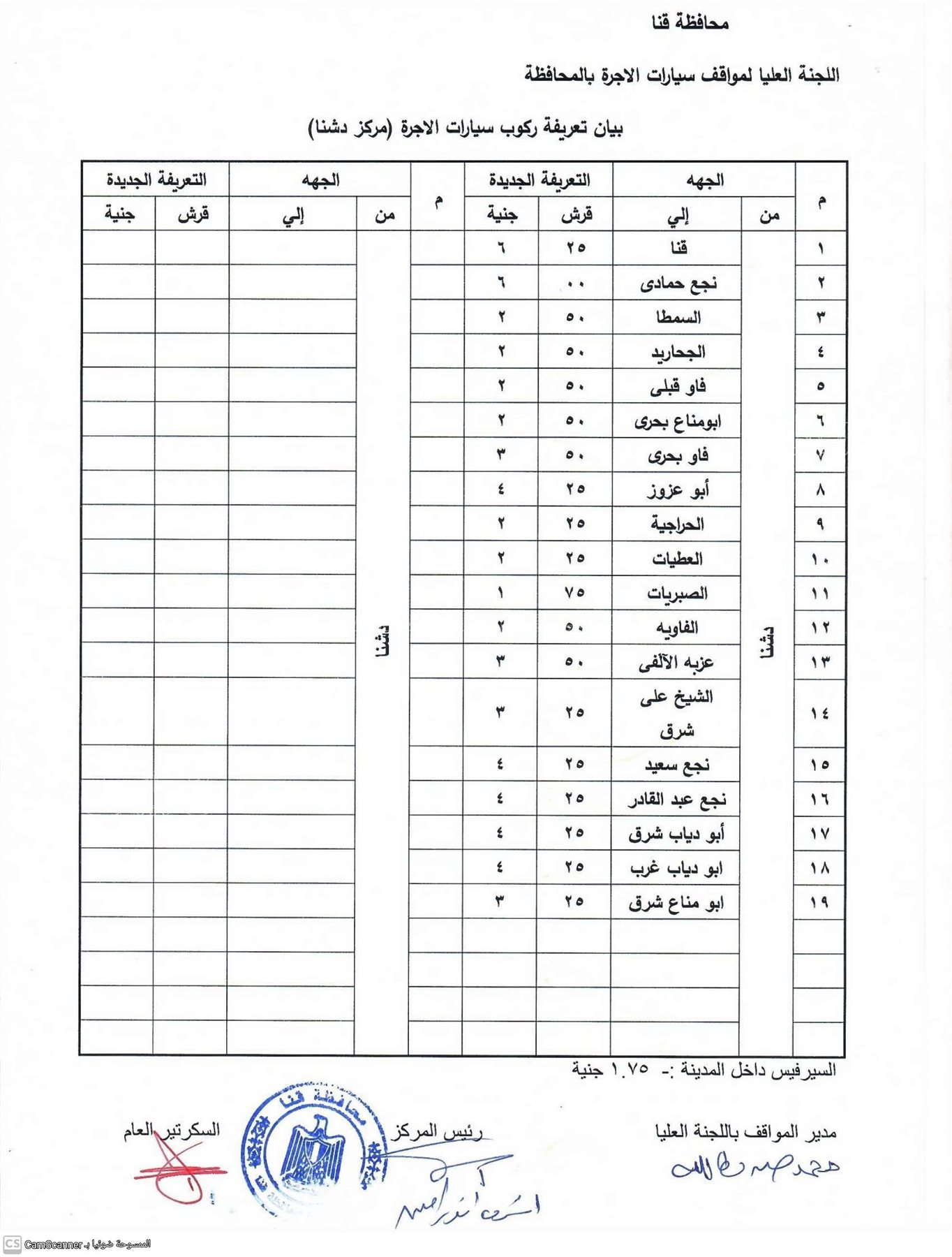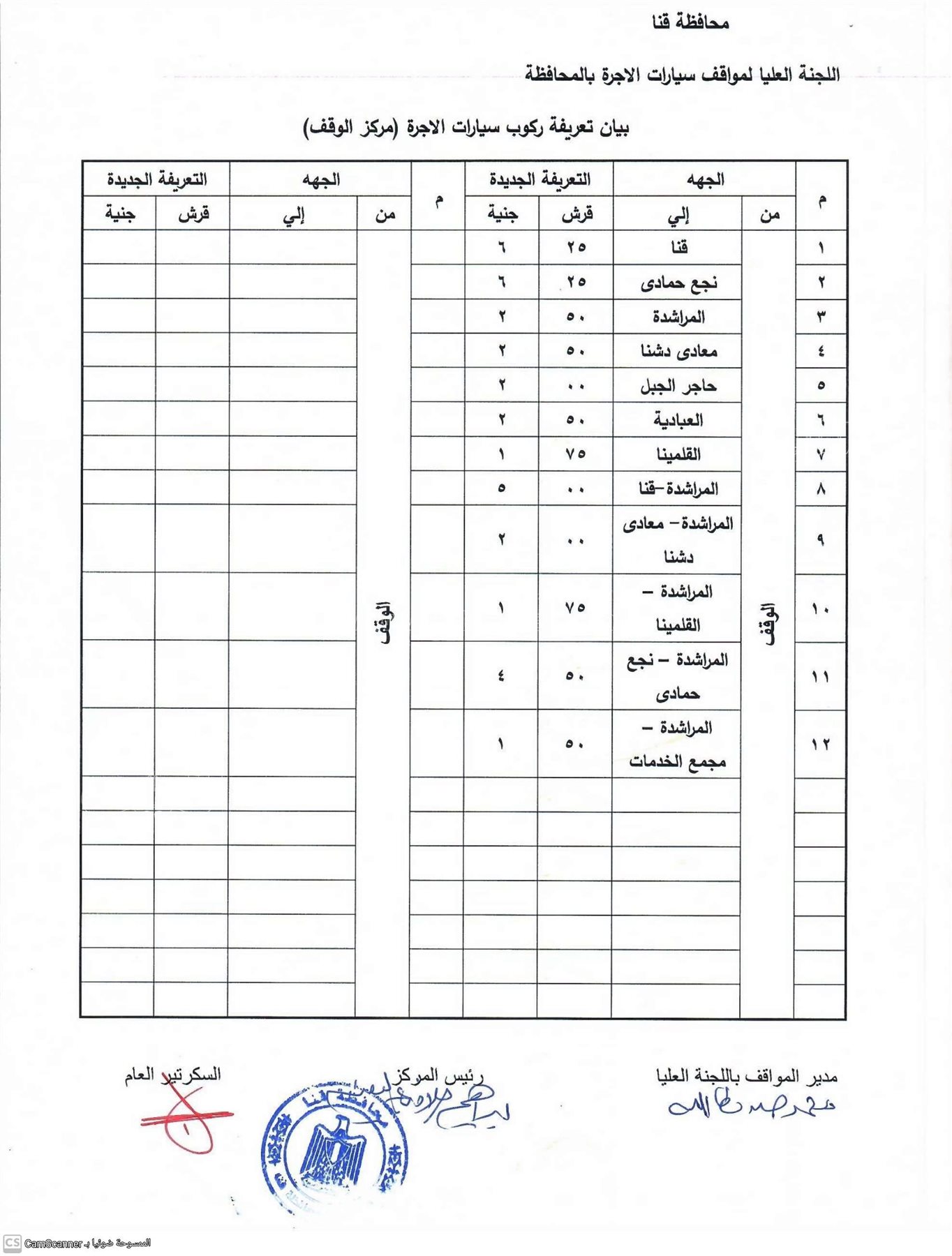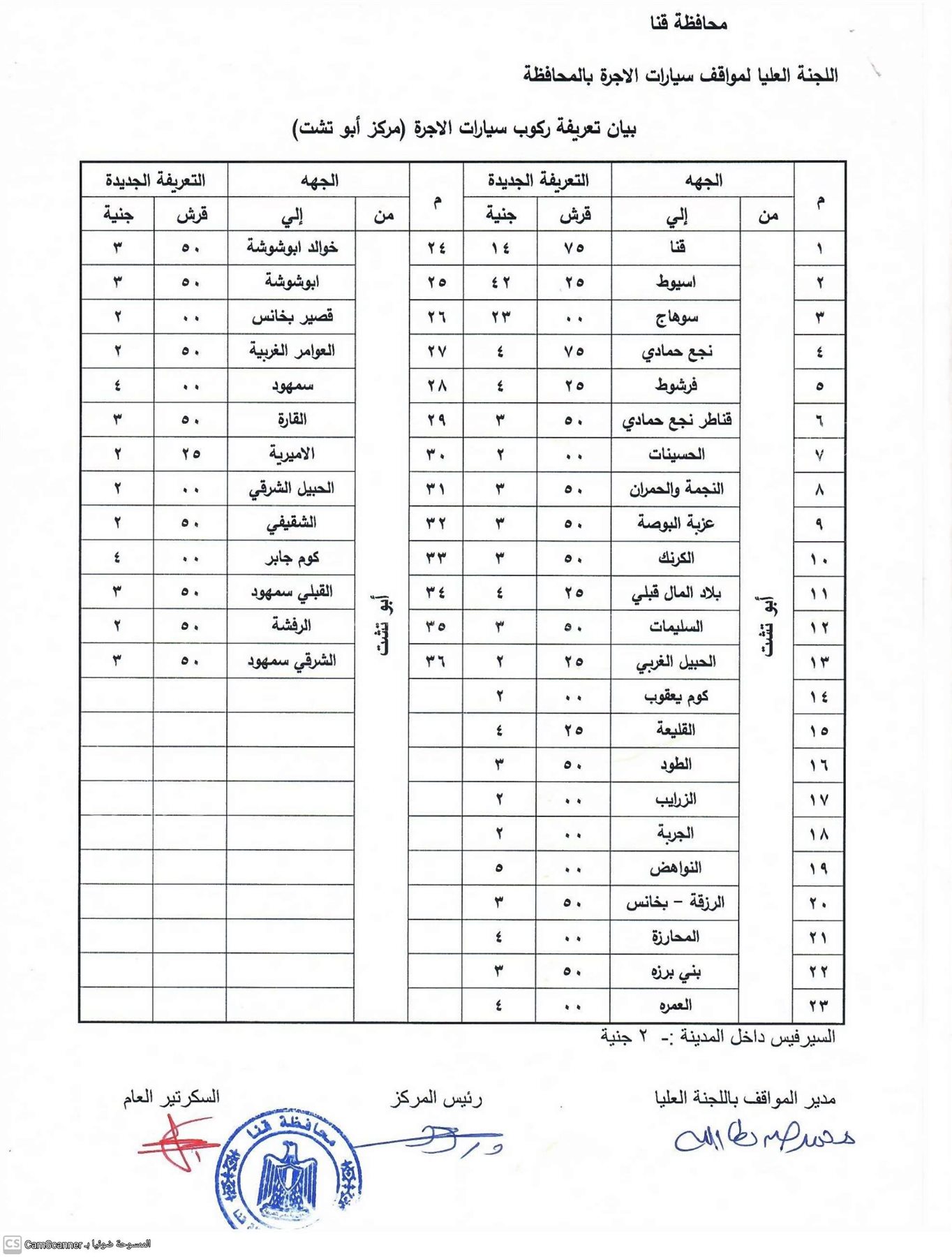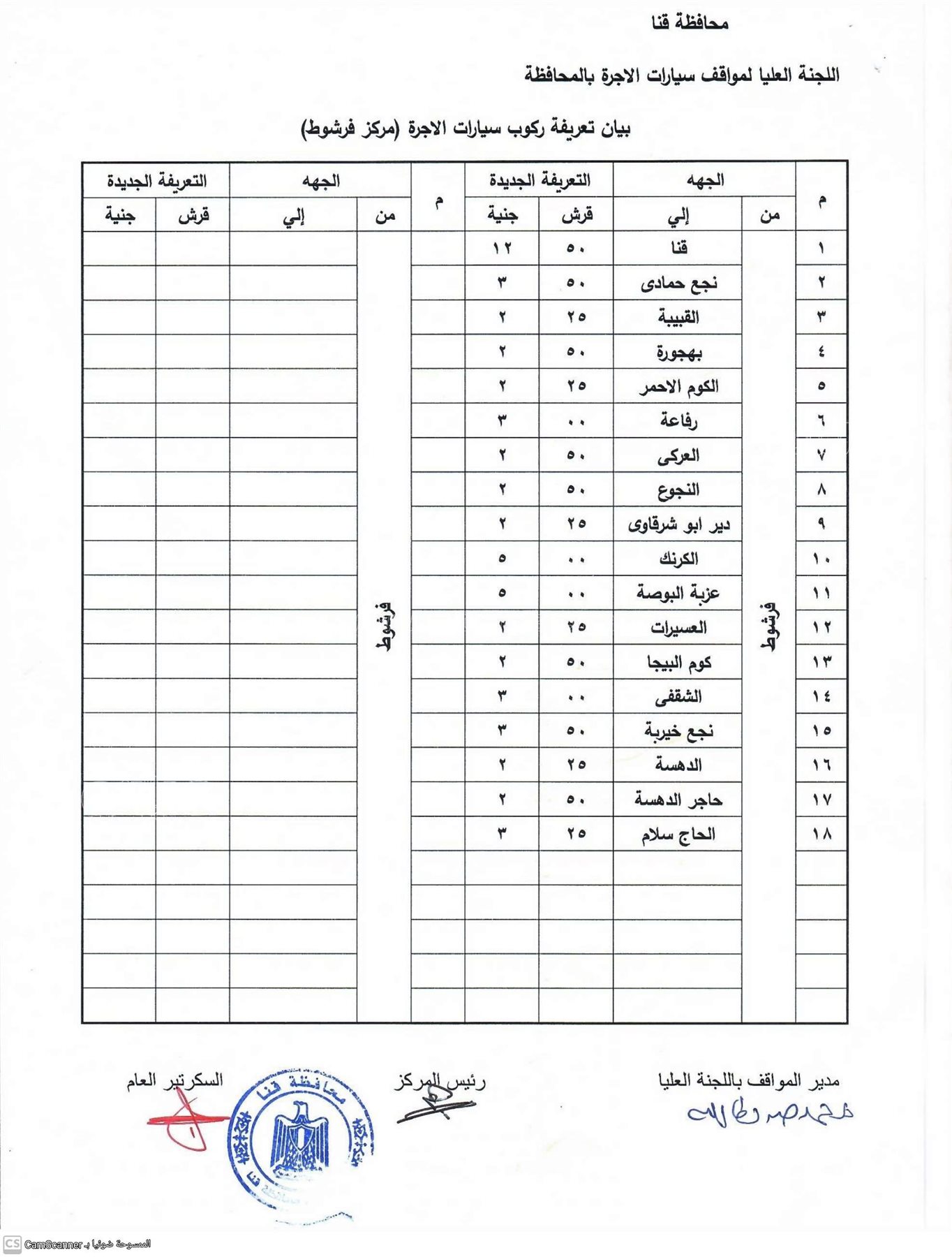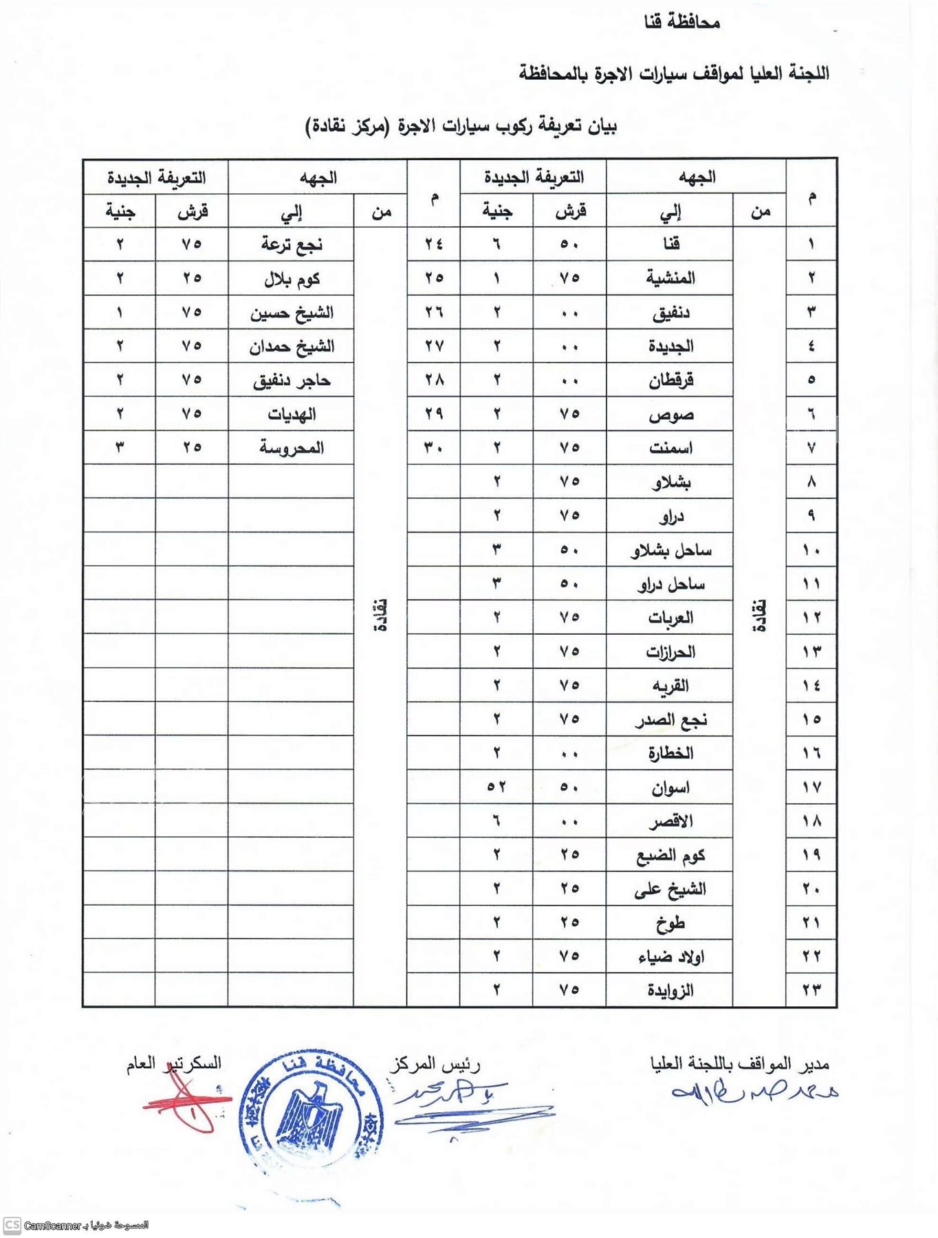أعلنت وزارة التنمية المحلية الأسعار الجديدة لتعريفة الركوب بمحافظة بقنا.