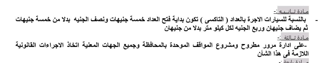 كما وجه محافظ مطروح مدير إدارة مرور مطروح ومباحث المرور بمتابعة جميع مواقف السيارات وشن حملات مستمرة لإحكام السيطرة بجميع مواقف السيارات الداخلية والخارجية وإلزام جميع السائقين بالأسعار المقررة.
