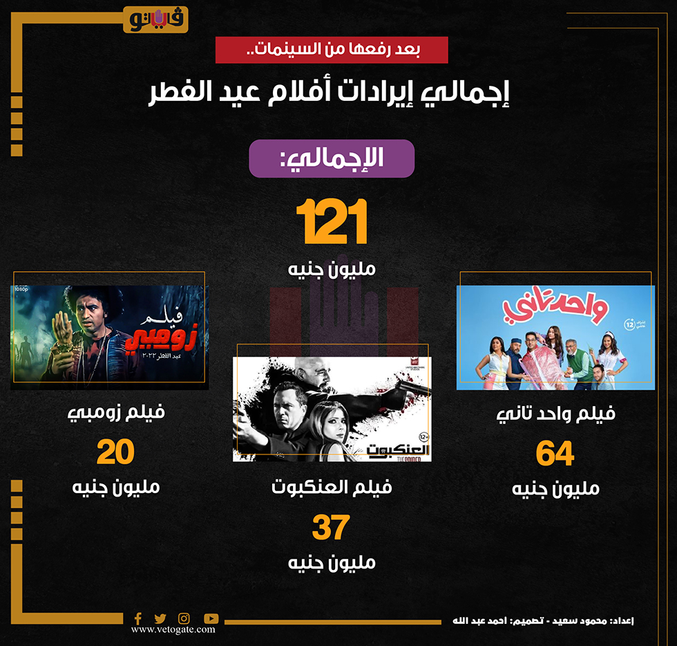 بعد رفعها من السينمات.. إجمالي إيرادات أفلام عيد الفطر | إنفوجراف الأربعاء 13/يوليو/2022 - 06:20 م 7/13/2022 6:20:11 PM ايرادات افلام عيد الفطر محمود سعيد شارك طباعة 18 حجم الخط شارك طباعة فيلم واحد تاني ايرادات افلام عيد الفطر فيلم العنكبوت فيلم زومبي