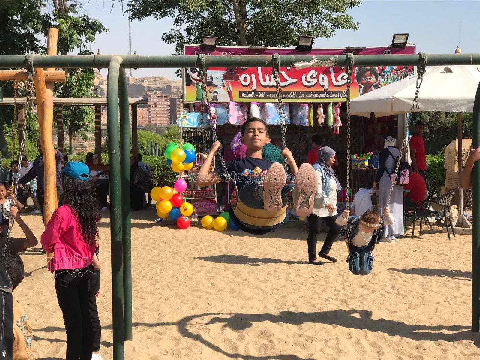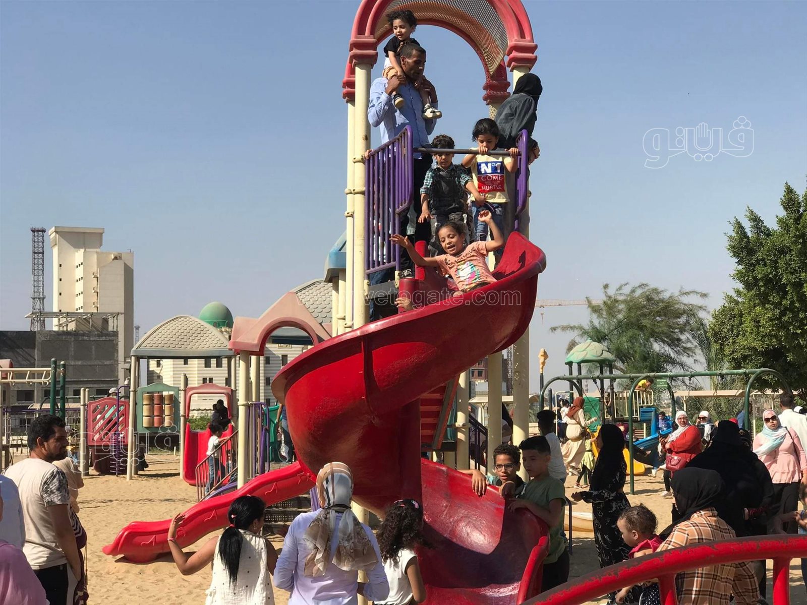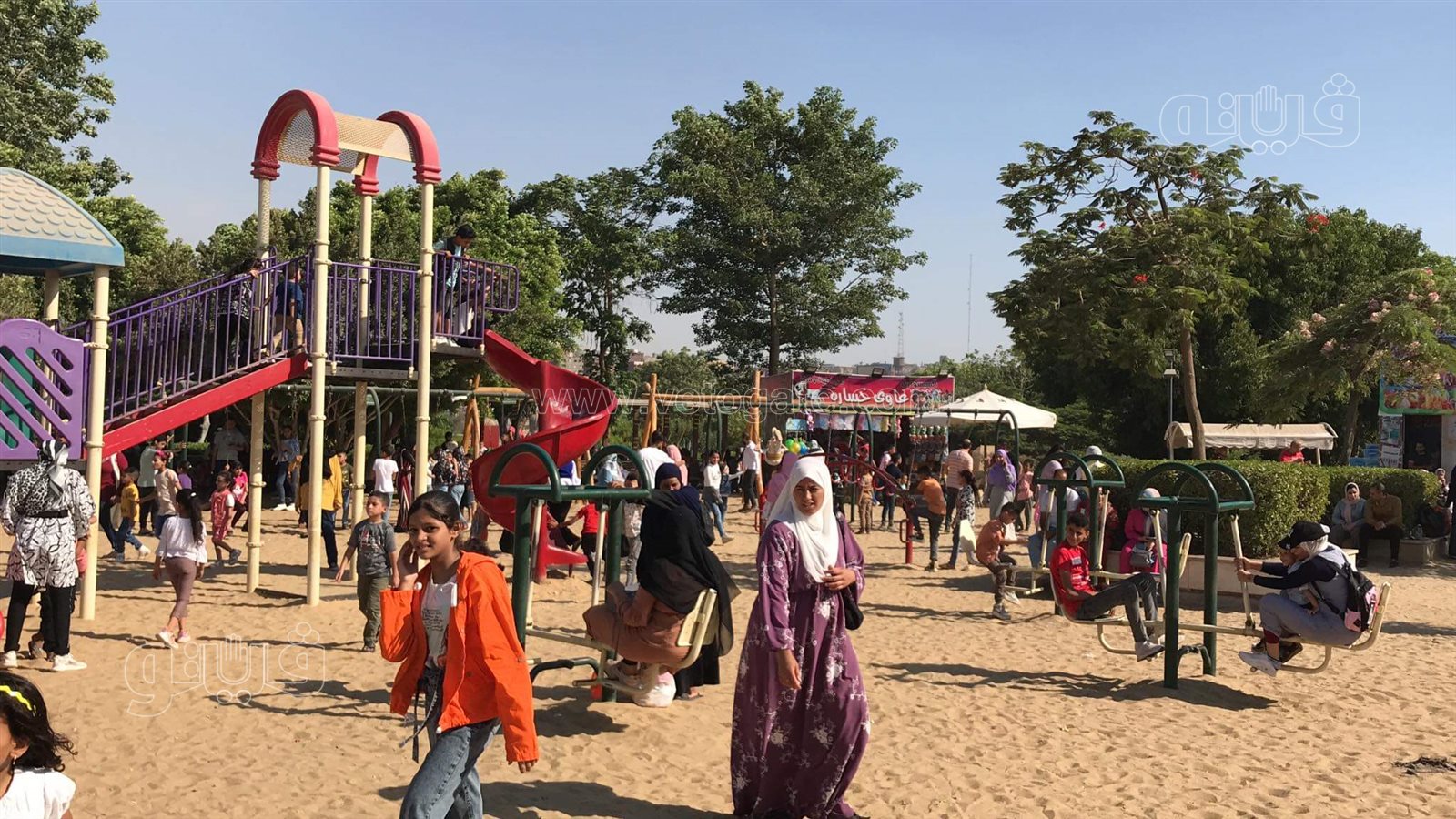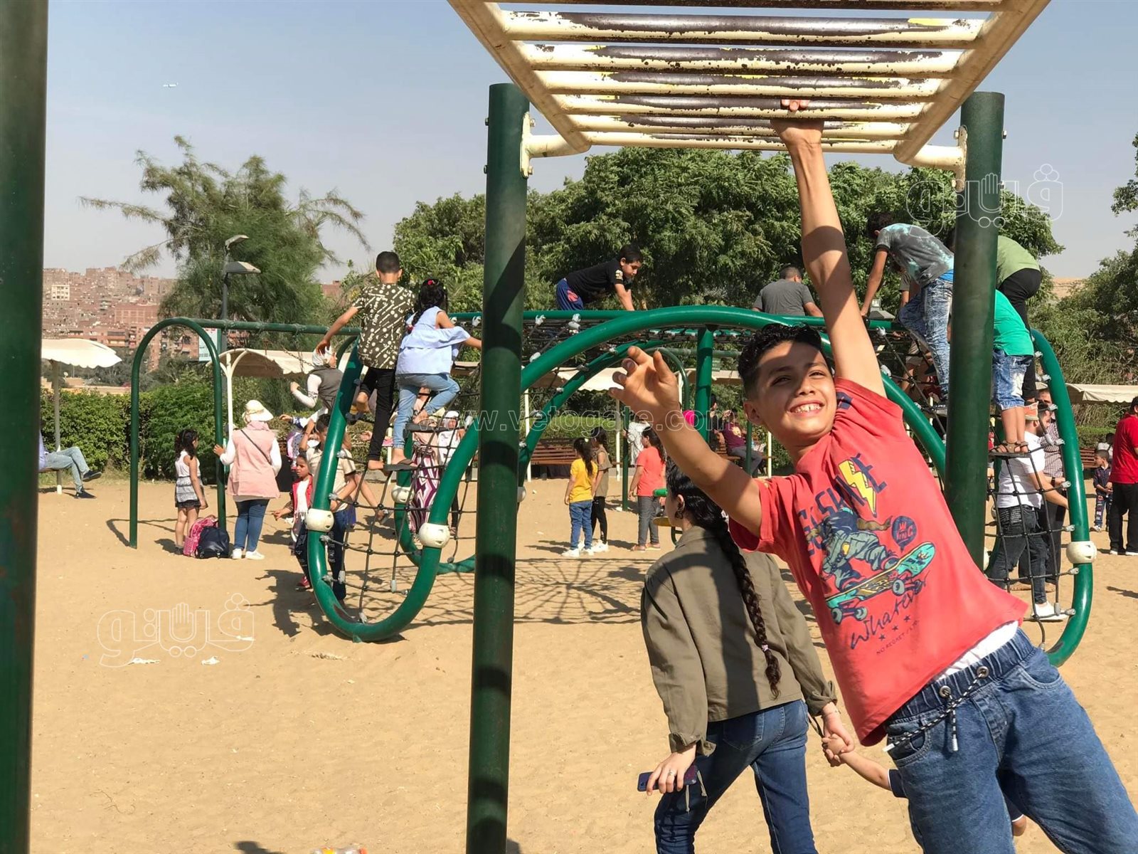 وأقبل العديد من الأطفال مع ذويهم على منطقة الألعاب والملاهي الترفيهية بالحديقة، وسط حالة من البهجة والسعادة تسيطر عليهم.