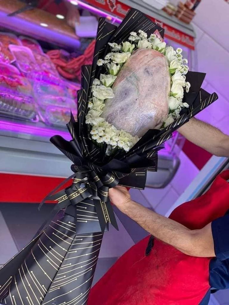 باقة من لحوم الأضاحي المحوطة بالورود، أهداها جزائري لخطيبته بمناسبة عيد الأضحى فجرت موجة سخرية عارمة في الجزائر.