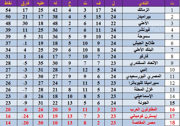 وتنشر فيتو جدول ترتيب الدوري الممتاز بعد انتهاء مباريات أمس الأربعاء في الجولة الـ 24 لمسابقة الدوري العام.