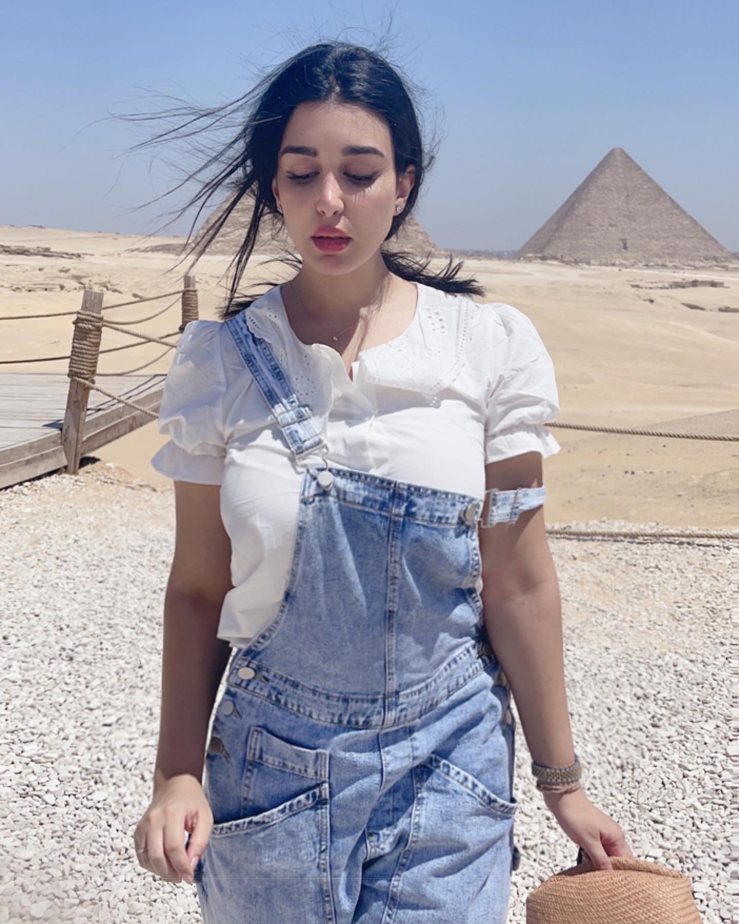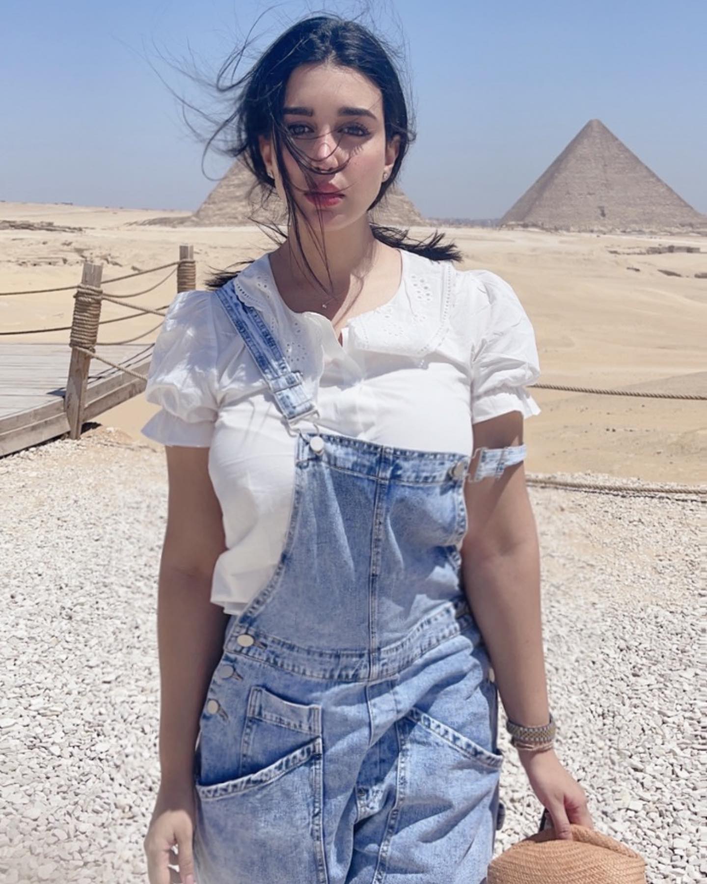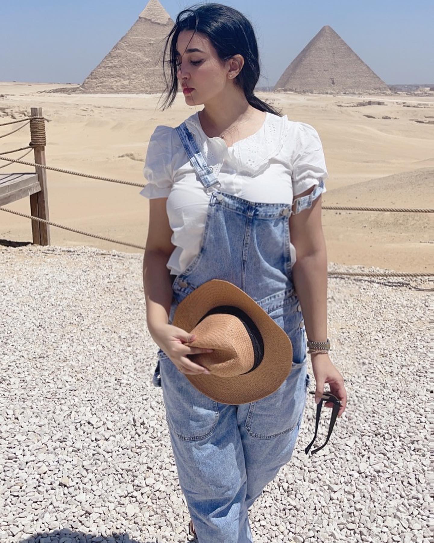 جيهان خليل بإطلالة مميزة أمام الأهرامات