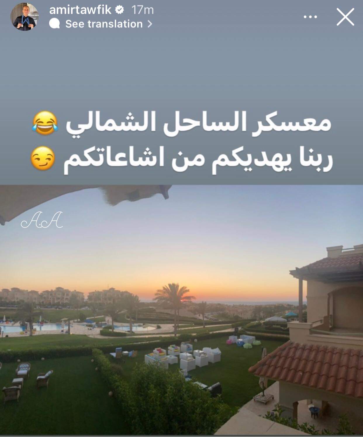وعلق أمير توفيق على الصورة قائلا: "معسكر الساحل الشمالي ربنا يهديكم من اشاعاتكم".