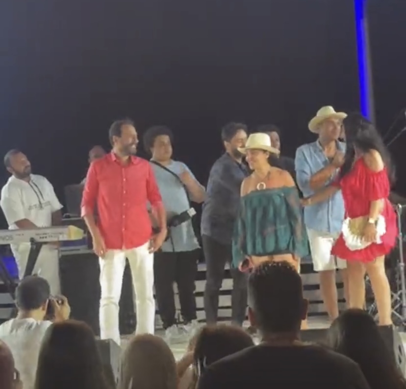 وشهد الحفل أيضا اصطحاب تامر حسني لبناته على المسرح، بالإضافة إلي حضور زوجته بسمة بوسيل.