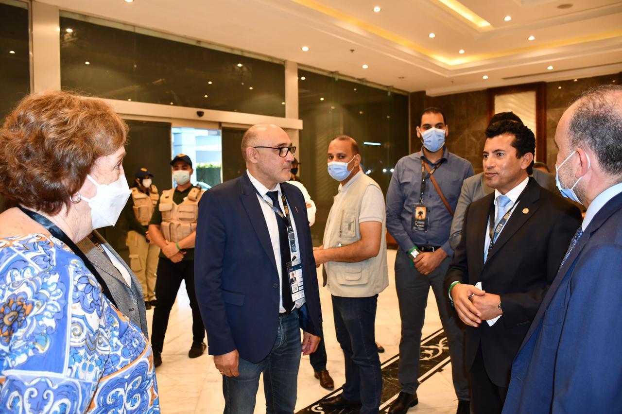 ورحب وزير الرياضة بوفد الاتحاد الدولي المتواجد في البطولة، مؤكدًا توفير كافة الإمكانات لخروج البطولة بصورة مشرفة تليق بمكانة مصر التنظيمية.