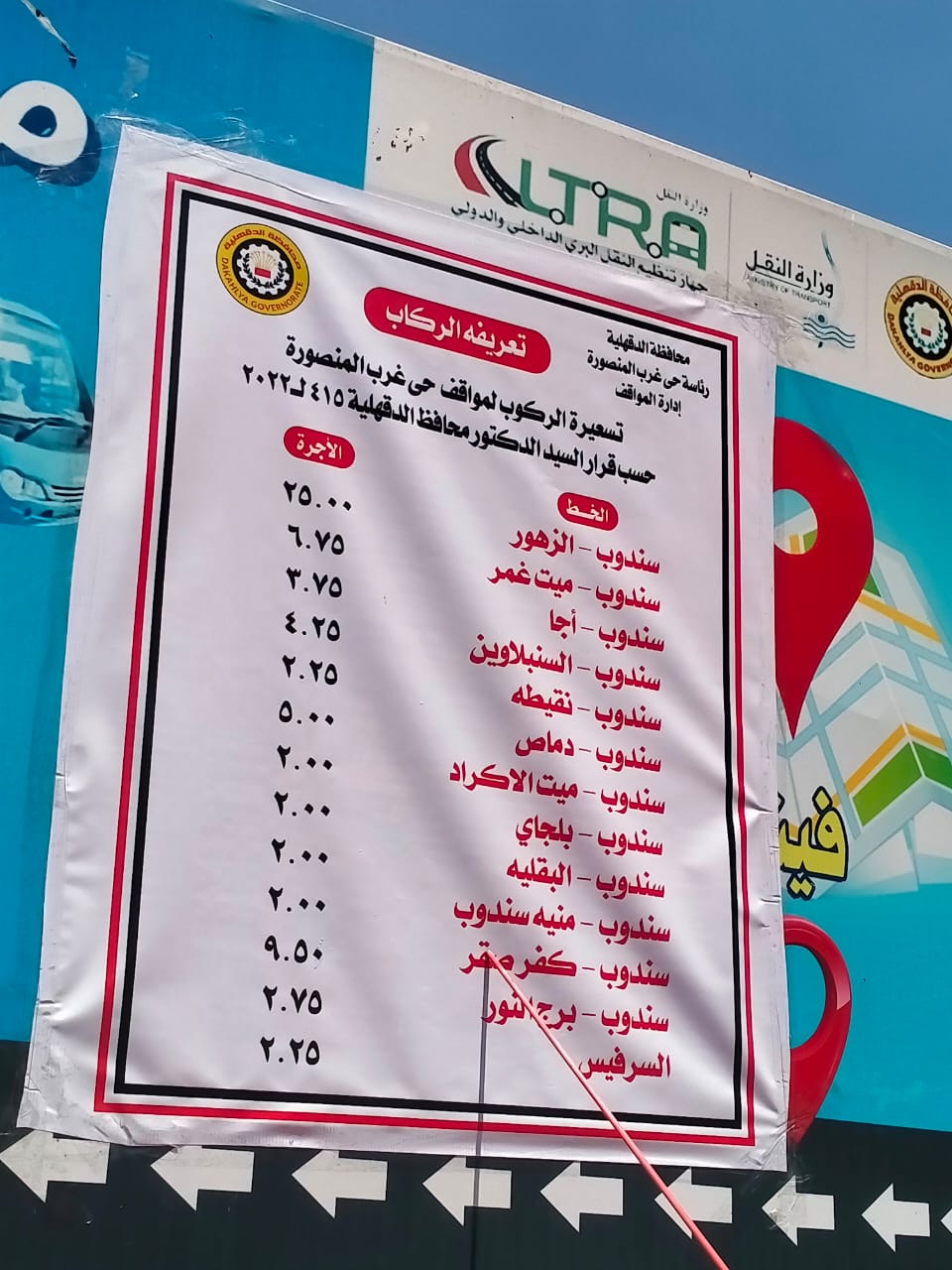 وأكد الدكتور أيمن مختار محافظ الدقهلية، الانتهاء من طبع وتعليق استيكرات بالأجرة الجديدة لجميع خطوط السيارات بين الدقهلية والمحافظات أو فيما بين المراكز وبعضها أو فيما بين المراكز والقري بنطاق المحافظة.