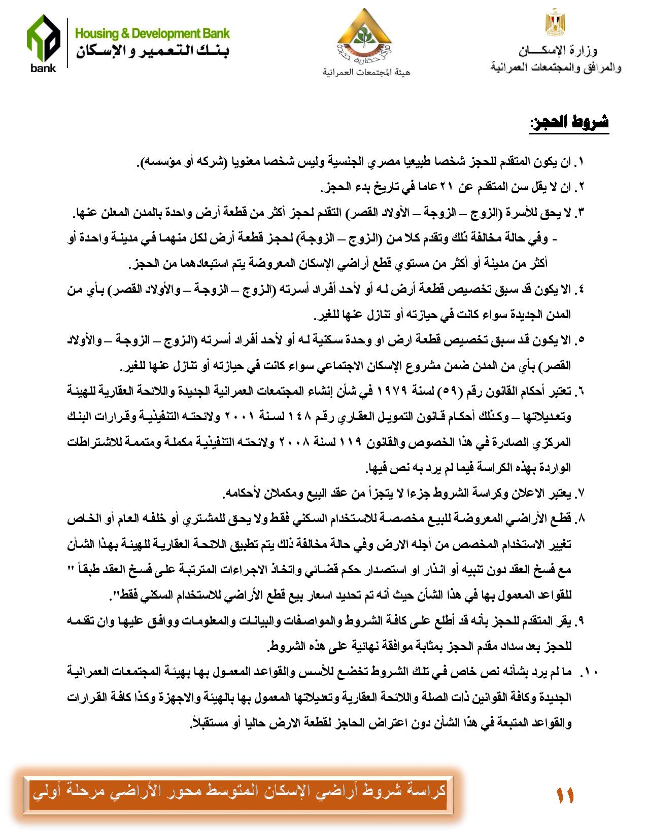 - لا يحق للأسرة (الزوجة، والأولاد القصر) التقدم لحجز أكثر من قطعة أرض واحدة في المدن المعلن عنها.