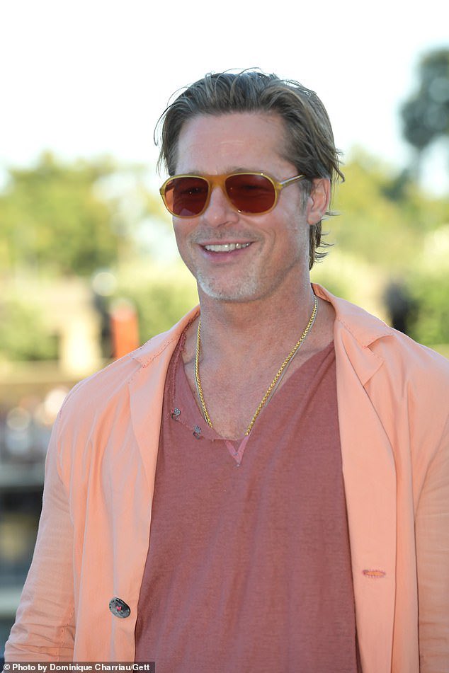 واختار براد بيت أن يرتدي ملابس ذات ألوان زاهية وشبابية، فظهر بجاكت كاجوال باللون البرتقالي مع نظارة شمسية متناسقة معه.