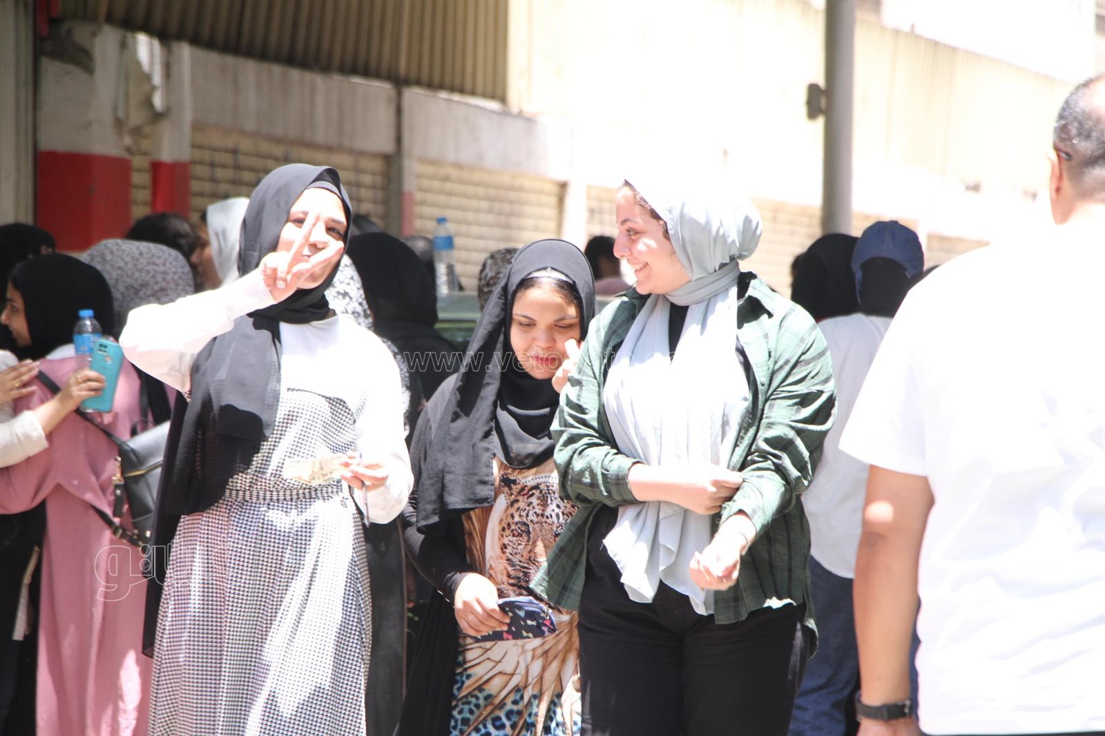 سادت حالة من الفرحة على وجوه طالبات الثانوية العامة، بعد انتهاء امتحانات مادتي الجيولوجيا والعلوم البيئية، وعلم النفس، في لجنة مدرسة المنيرة الإعدادية بوسط القاهرة.