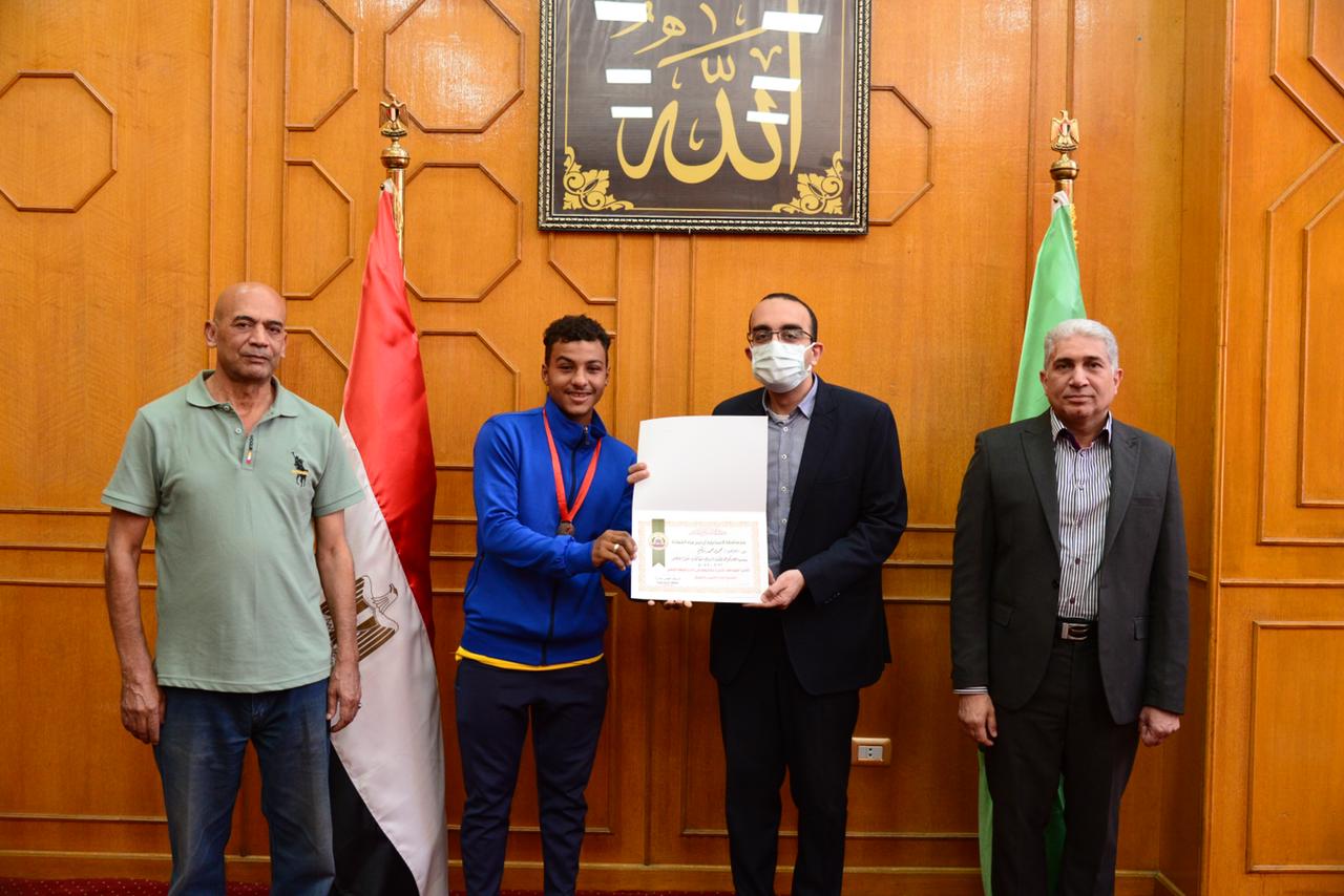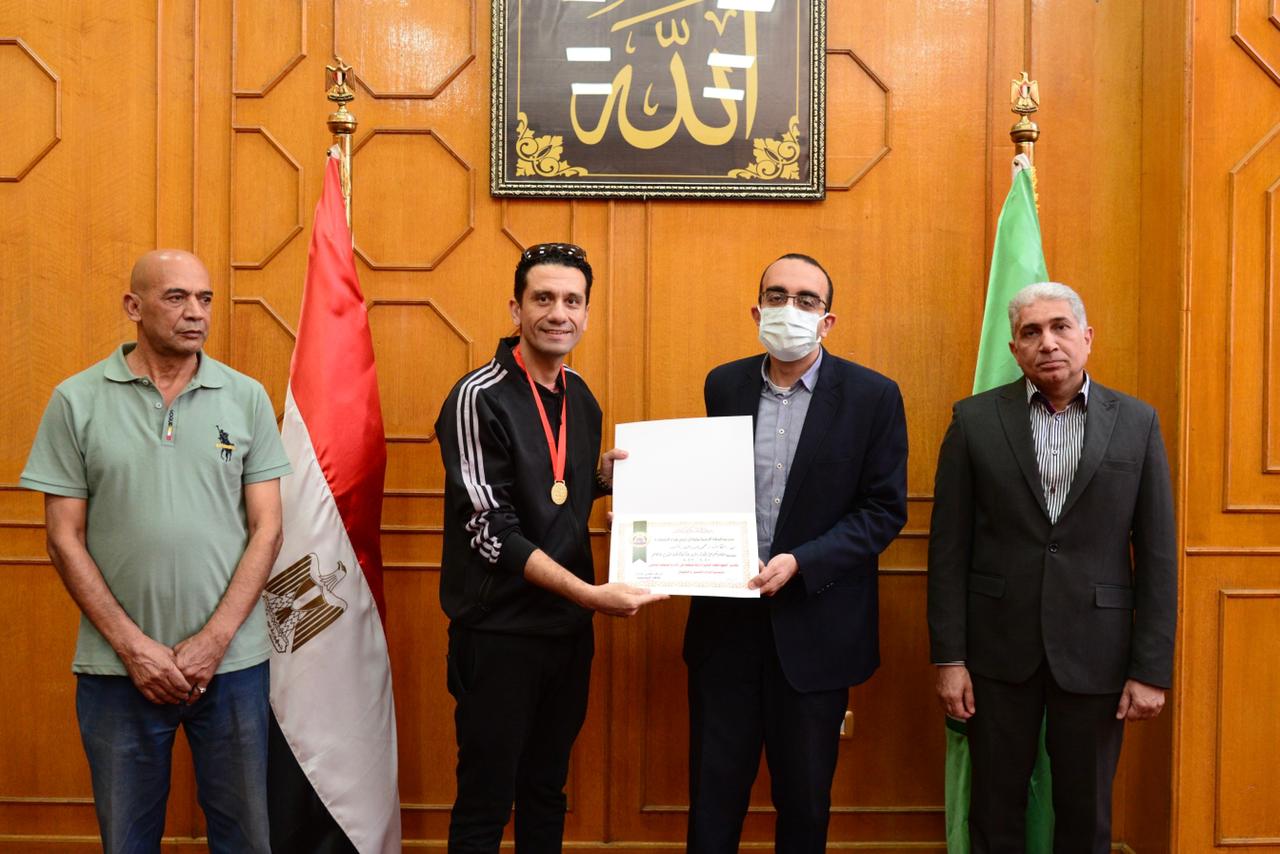 و خلال الاحتفالية قدم نائب المحافظ شهادات التقدير للجهاز الفني وللاعبي فريق طلائع المستقبل وحرص "عصام" على التقاط الصور التذكارية مع أبطال الدوري ودرع الدوري الممتاز للصم لهذا الموسم ٢٠٢٢/٢٠٢١.