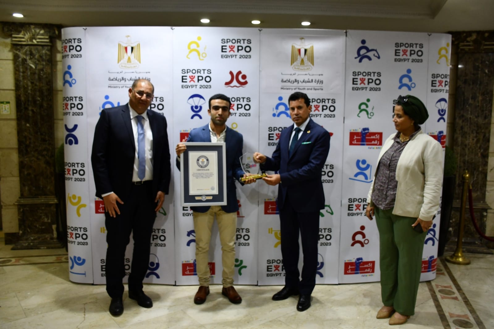 وزير الرياضة يكرم علي منير صاحب الرقم القياسي بموسوعة جينيس في "الجامب اسكوات"