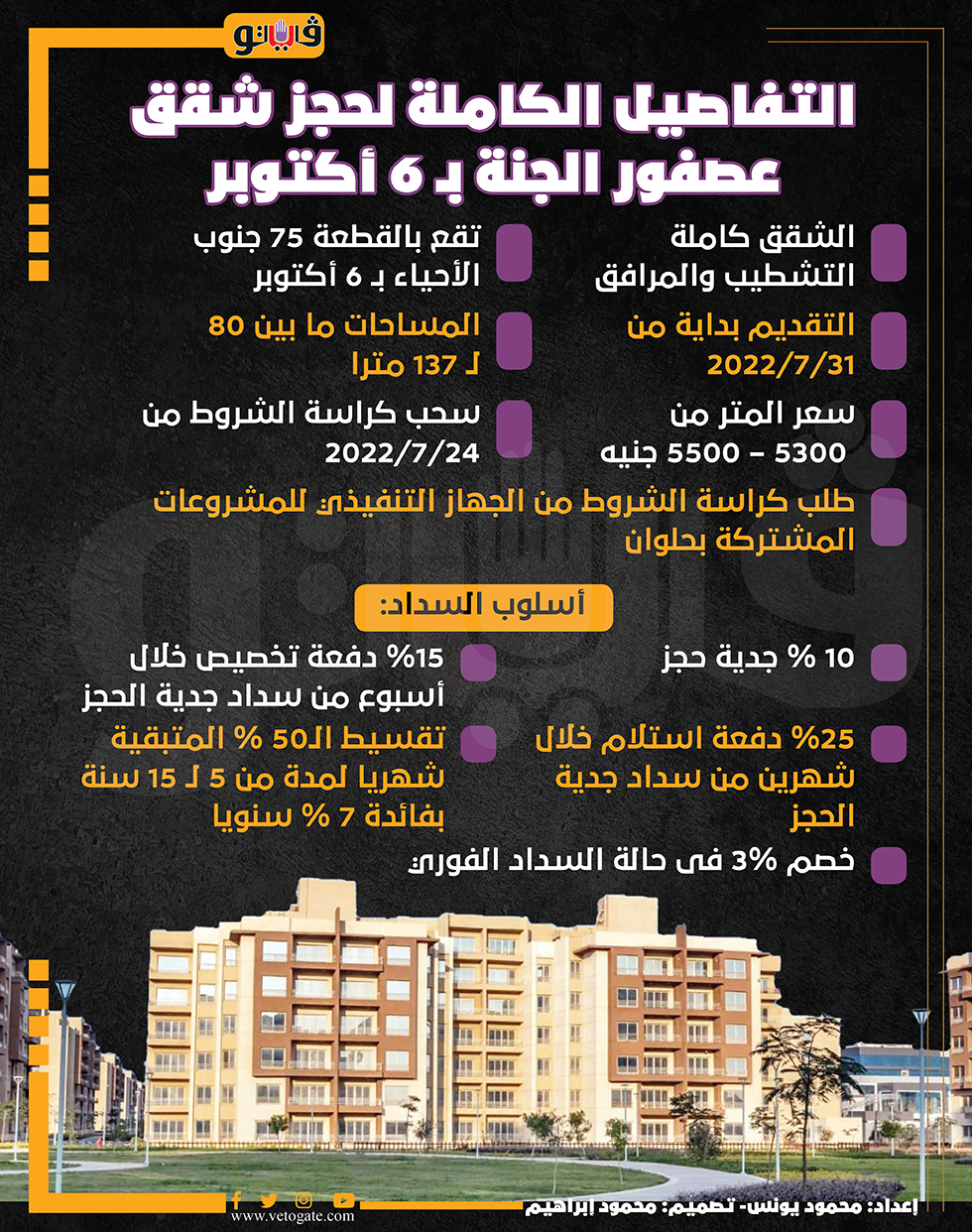 التفاصيل الكاملة لحجز شقق عصفور الجنة بـ 6 أكتوبر | انفوجراف الإثنين 18/يوليو/2022 - 07:29 م 7/18/2022 7:29:38 PM شقق الاسكان محمود يونس شارك طباعة 18 حجم الخط شارك طباعة مدينة 6 أكتوبر 6 أكتوبر شقق عصفور الجنة