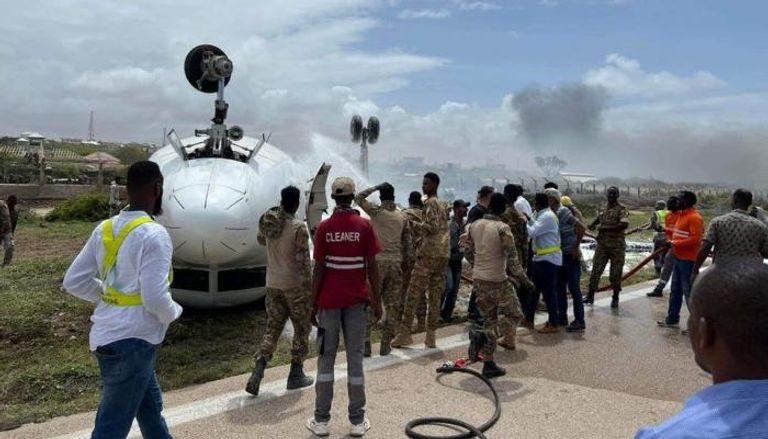 انقلاب طائرة بمطار مقديشو بالصومال | صور