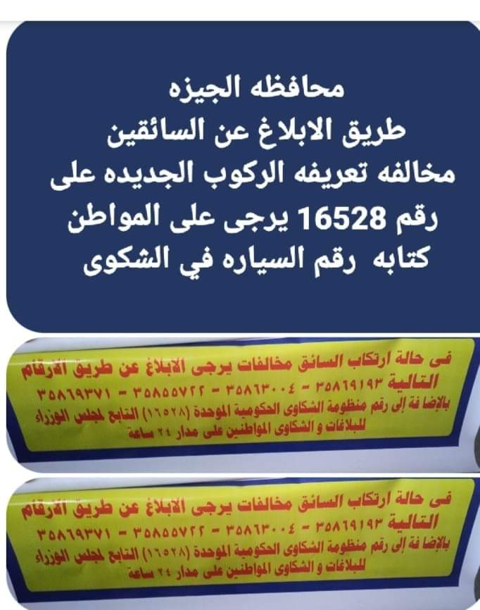 كشفت محافظة الجيزة عن طريقة الابلاغ عن السائقين المخالفين لقرار التعريفة المقررة من قبل محافظ الجيزة.