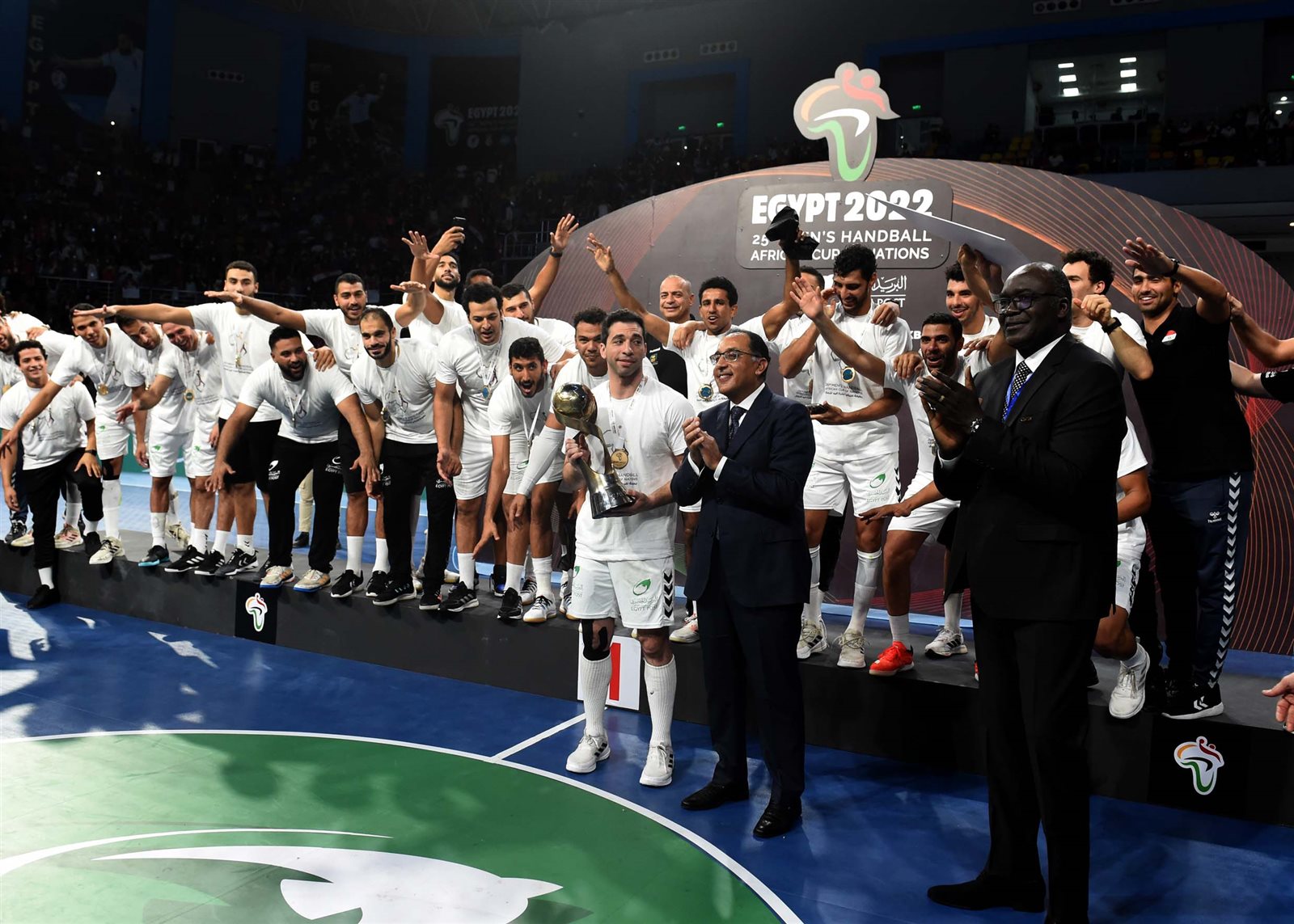 وفي نهاية حفل الختام، قام الدكتور مصطفى مدبولي بتسليم كأس البطولة، إلى المنتخب المصري الفائز بلقب بطولة كأس أمم أفريقيا لليد للرجال 2022، وتقليد لاعبيه الميداليات الذهبية، وتم عزف السلام الوطني للمنتخب المصري الفائز باللقب.