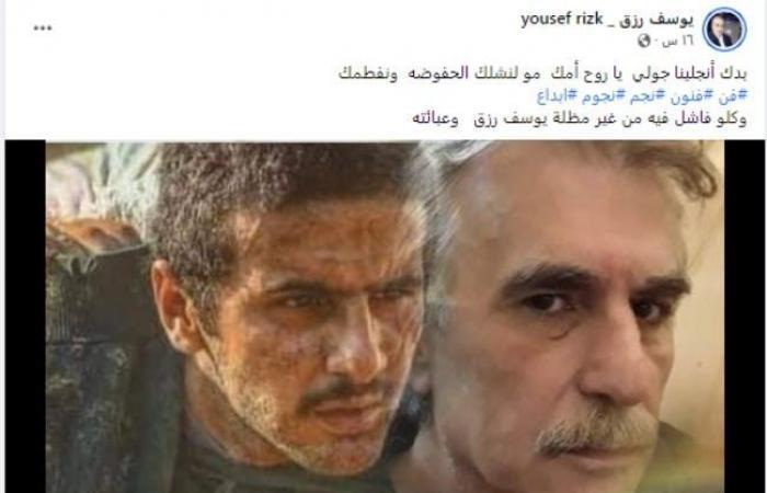 شن المخرج السوري يوسف رزق هجومًا على نجله الفنان الشاب سليمان رزق بسبب رغبته بالزواج من نجمة هوليوود أنجلينا جولي، واتهمه بالفشل في كل أموره.