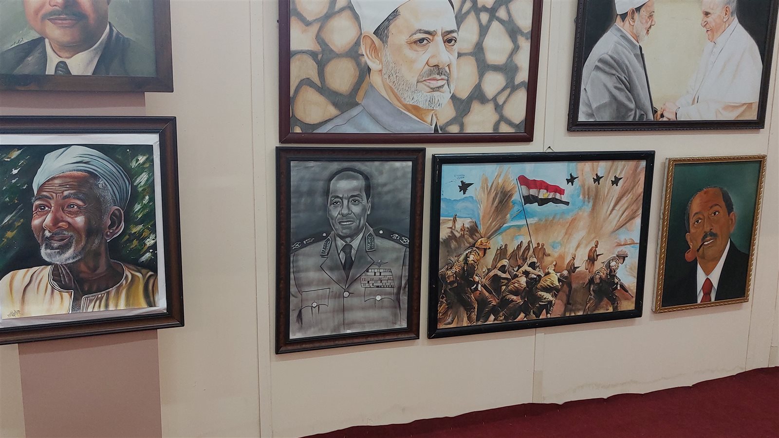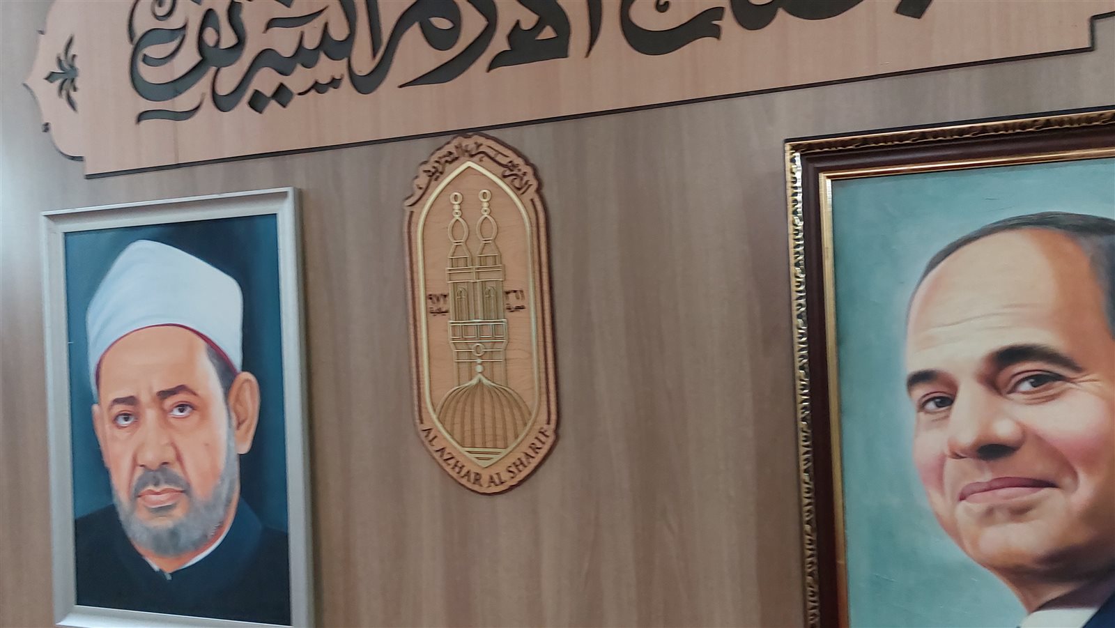 وتصدر جناح الازهر صورة للشيخ حسن العطار احد اهم علماء الأزهر، ثم صورة للرئيس عبد الفتاح السيسي، وشيخ الازهر احمد الطيب ومجموعة صور للعلماء الأزهر والرئيس الراحل محمد أنور السادات ولوحه فنية لبابا الفاتيكان وشيخ الأزهر والدكتور أحمد زويل.