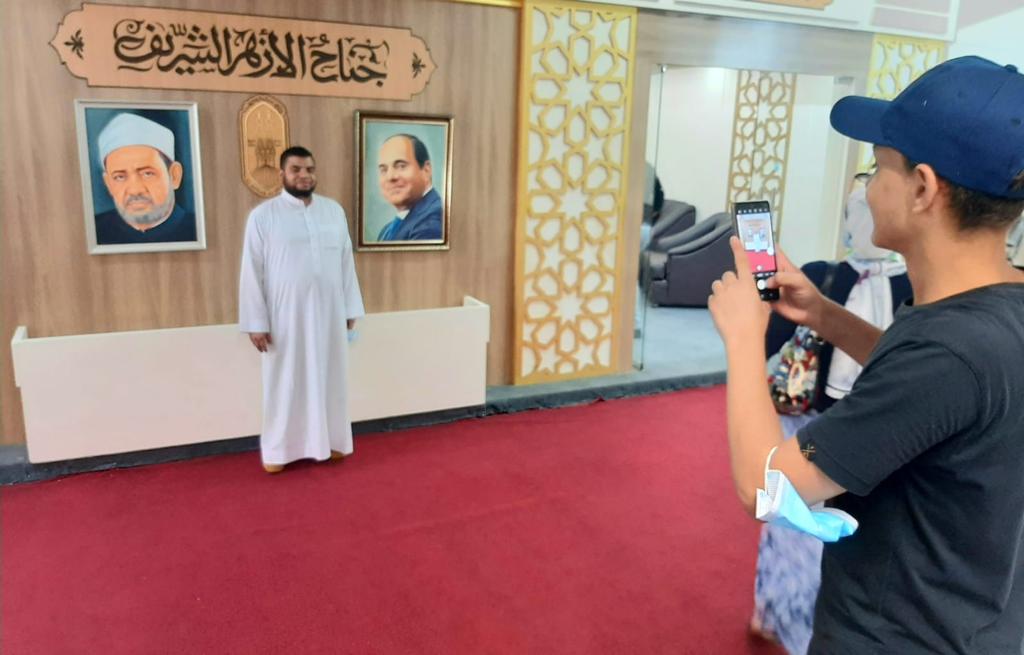 وحرص رواد جناح الأزهر الشريف من مختلف الأعمار والفئات، على التقاط الصور التذكارية مع صورتي السيد الرئيس عبد الفتاح السيسي، رئيس الجمهورية وفضيلة الإمام الأكبر الأستاذ الدكتور أحمد الطيب، شيخ الأزهر الشريف، المتواجدة بالجناح، ولعل أبرز الفئات الحريصة على التقاط الصور التذكارية كانت الشباب والأطفال.