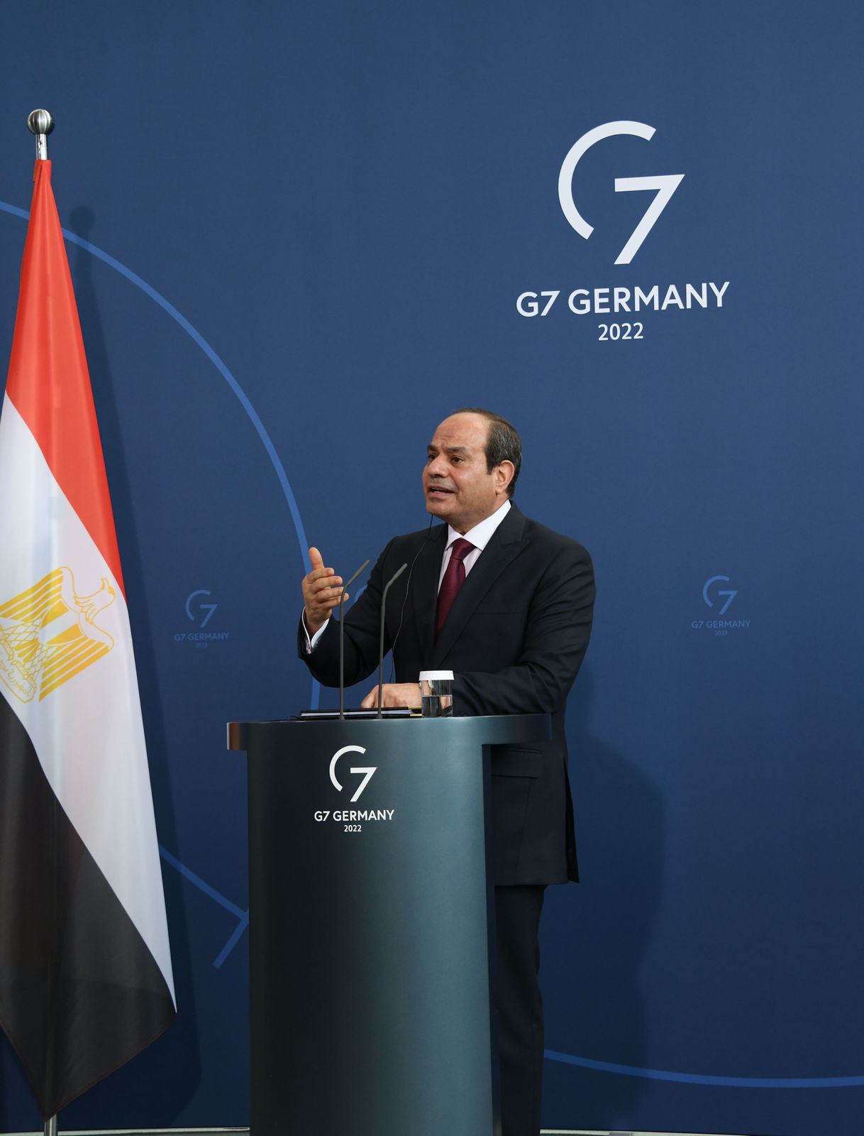 كما تم استعراض سبل التعاون والتنسيق المشترك في إطار استضافة مصر لقمة المناخ العالمية في شرم الشيخ في نوفمبر من العام الجاري، خاصةً في ضوء الدور البارز للدولتين في مجال قضايا البيئة والمناخ، حيث أعرب المستشار الألماني عن خالص تمنياته بنجاح مصر في استضافة هذا الحدث الدولي الضخم والخروج بنتائج ملموسة من هذه القمة تعزز من عمل المناخ الدولي، في حين أوضح الرئيس أن مصر تعتزم التركيز خلال هذه القمة على عدد من الملفات الهامة، خاصةً ما يتعلق بموضوعات التكيف في أفريقيا، ومسألة التمويل لدعم جهود القارة الأفريقية في مواجهة الظاهرة الخطيرة لتغير المناخ.ك، وأعقب اللقاء مؤتمرًا صحفيًا مشتركًا بين الجانبين، حيث ألقى الرئيس كلمة بهذه المناسبة.