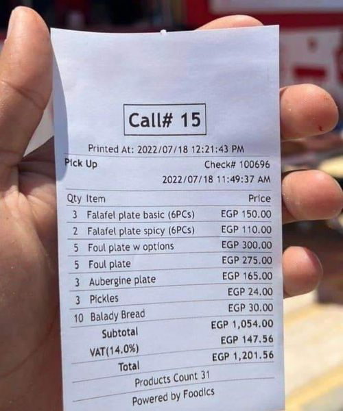 فاتورة فول وفلافل بـ1200 جنيه بالساحل الشمالي تثير سخرية النشطاء