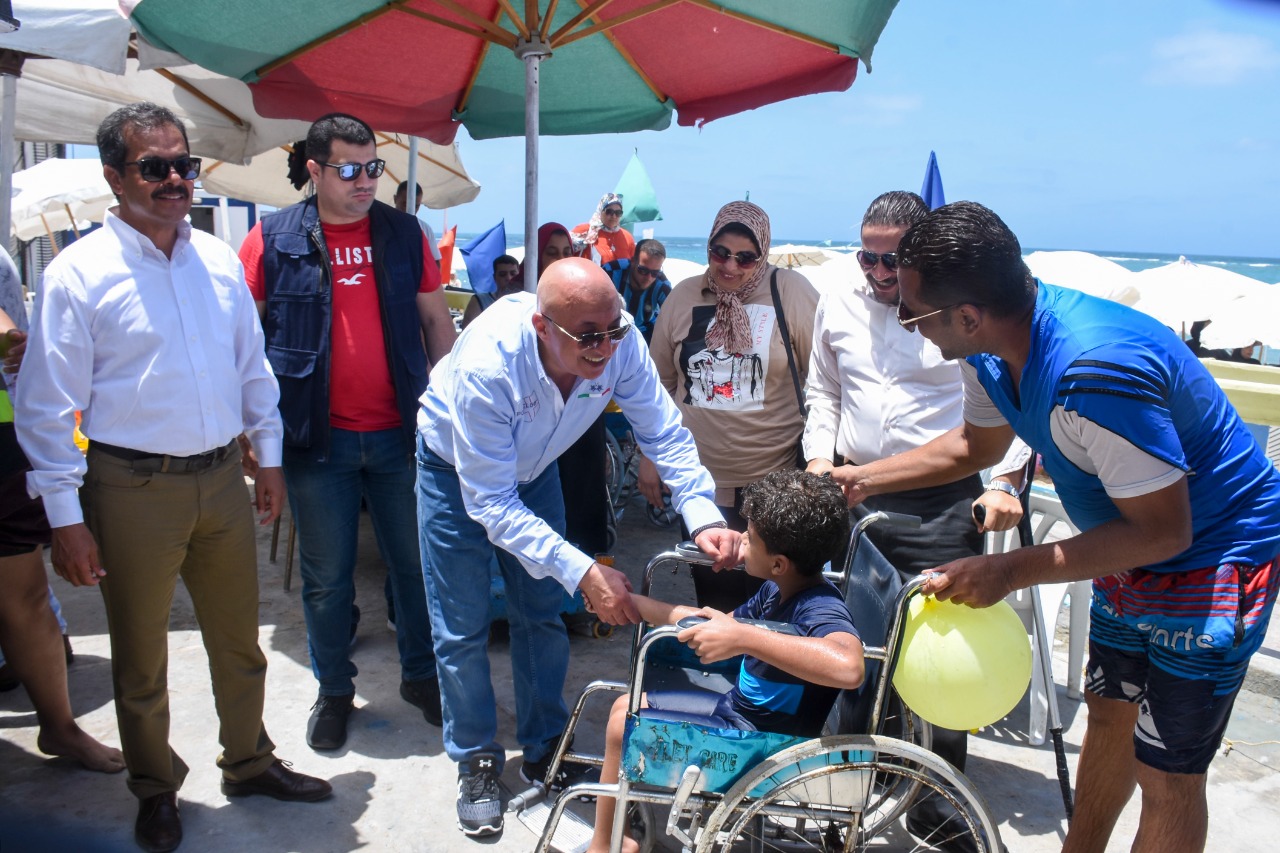 وتواجد المحافظ وسط أبناءه من ذوي الهمم، مؤكدا أن المحافظة تسعد باستضافة أبناءنا من ذوي الهمم من جميع محافظات الجمهورية على شاطىء ذوي الهمم بالمندرة المجاني والذي يعد الشاطئ الوحيد على مستوى محافظات.
