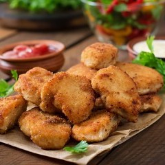 الناجتس من لحوم الدجاج المصنعة التى لها مكانة خاصة فى قلوب الصغار لمذاقها المميز وسهولة مضعها وبلعها، فهى الأكلة المحببة التى تعد بديلا للدجاج، ولكى يكون هذا البديل صحيا، يجب تحضيرها فى المنزل بدلا من شرائها جاهزة.