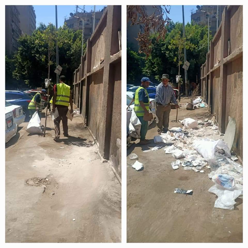 كما تم كلبشة لسيارات المتعدية على الطريق العام بشارع أحمد عرابى، ذلك بجانب القيام بأعمال كنس وتجريد ورفع مخلفات اتربة وتراكمات قمامة لعدة شوارع منها شارع محمود بدر الدين زمالك وشارع الرشيد من وادى النيل بقطاع العجوزة وشارع ترعة الزمر ومطلع المعتمدية وحرم الدائرى والصفطاوى وشارع سلامة عودة بقطاع ارض اللواء.