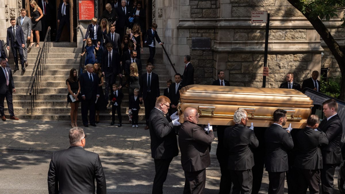 وانضم دون جونيور وإيفانكا وإريك ترامب إلى والدهم والسيدة الأولى السابقة ميلانيا في جنازة والدتهم في كنيسة ”سانت فنسنت فيرير“ في مانهاتن.