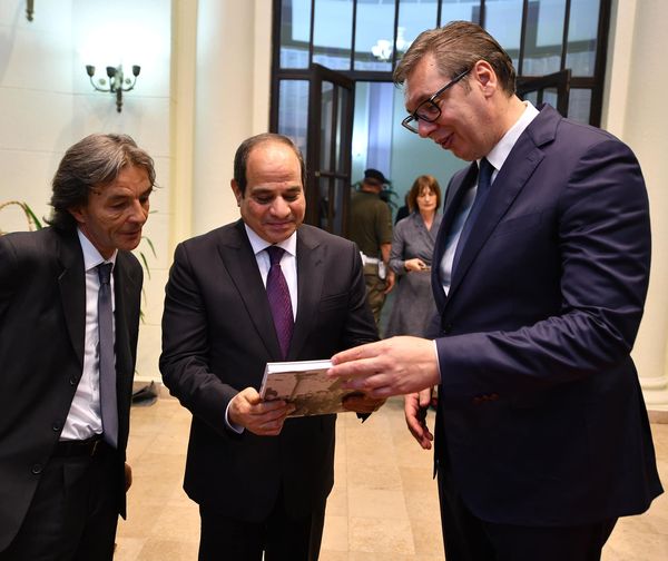 وصرح المتحدث الرسمي باسم رئاسة الجمهورية بأن الرئيس الصربي استهل اللقاء بالترحيب بالرئيس ضيفًا عزيزًا في صربيا للمرة الأولى، معربًا عن تقدير بلاده لمصر قيادةً وشعبًا، ومشيدًا بالعلاقات الثنائية الوثيقة التي تربط بين مصر وصربيا، مع تأكيد حرص بلاده على مواصلة الارتقاء بتلك العلاقات وتعزيز التعاون والتنسيق بين البلدين الصديقين على جميع المستويات، لاسيما في ضوء دور مصر المحوري كركيزة للاستقرار والأمن والسلام في الشرق الأوسط وأفريقيا