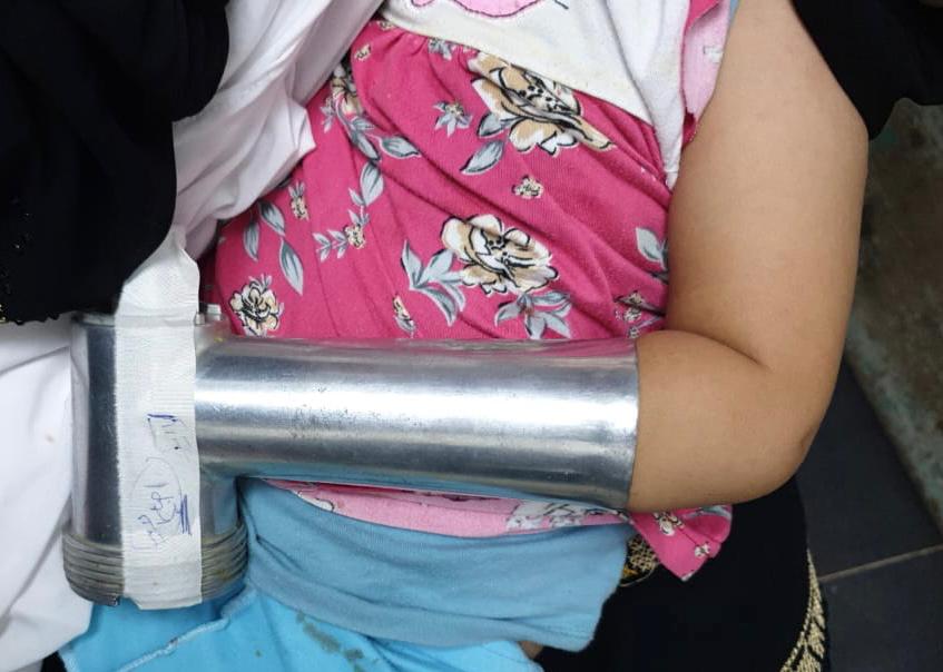 وتم إجراء عملية جراحية لها وجراحة ميكروسكوبية بدقة وتم إنقاذ يد الطفلة من البتر.