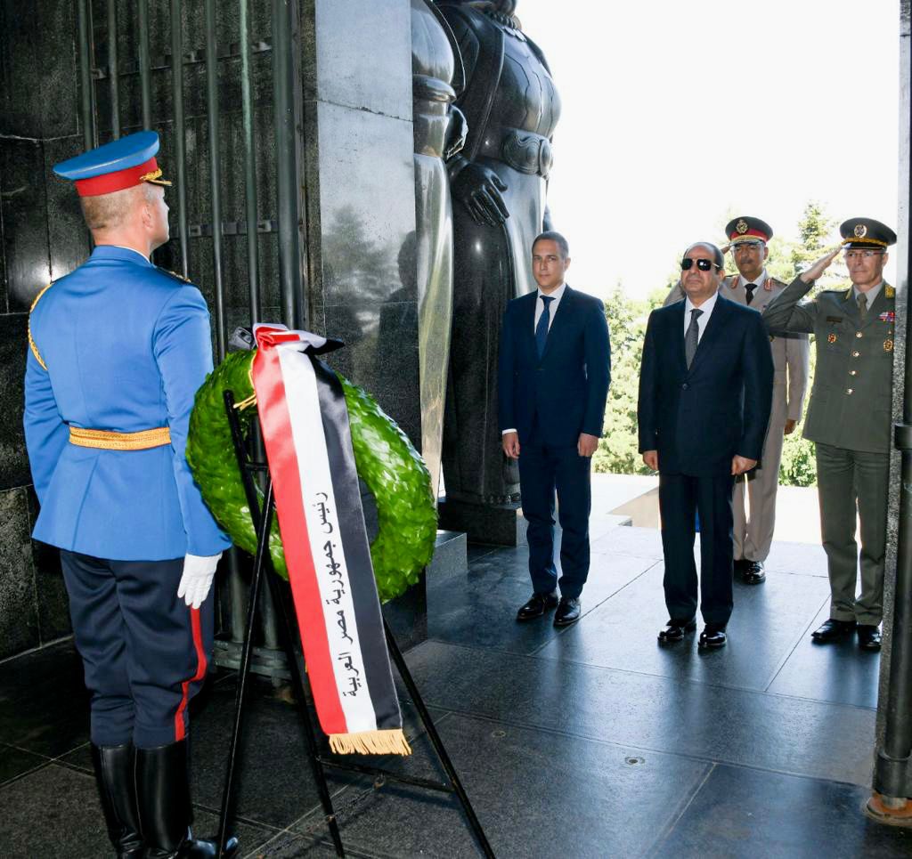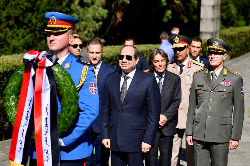 وضع الرئيس عبد الفتاح السيسي إكليلًا من الزهور على قبر الجندي المجهول بجبل أفالا في صربيا.