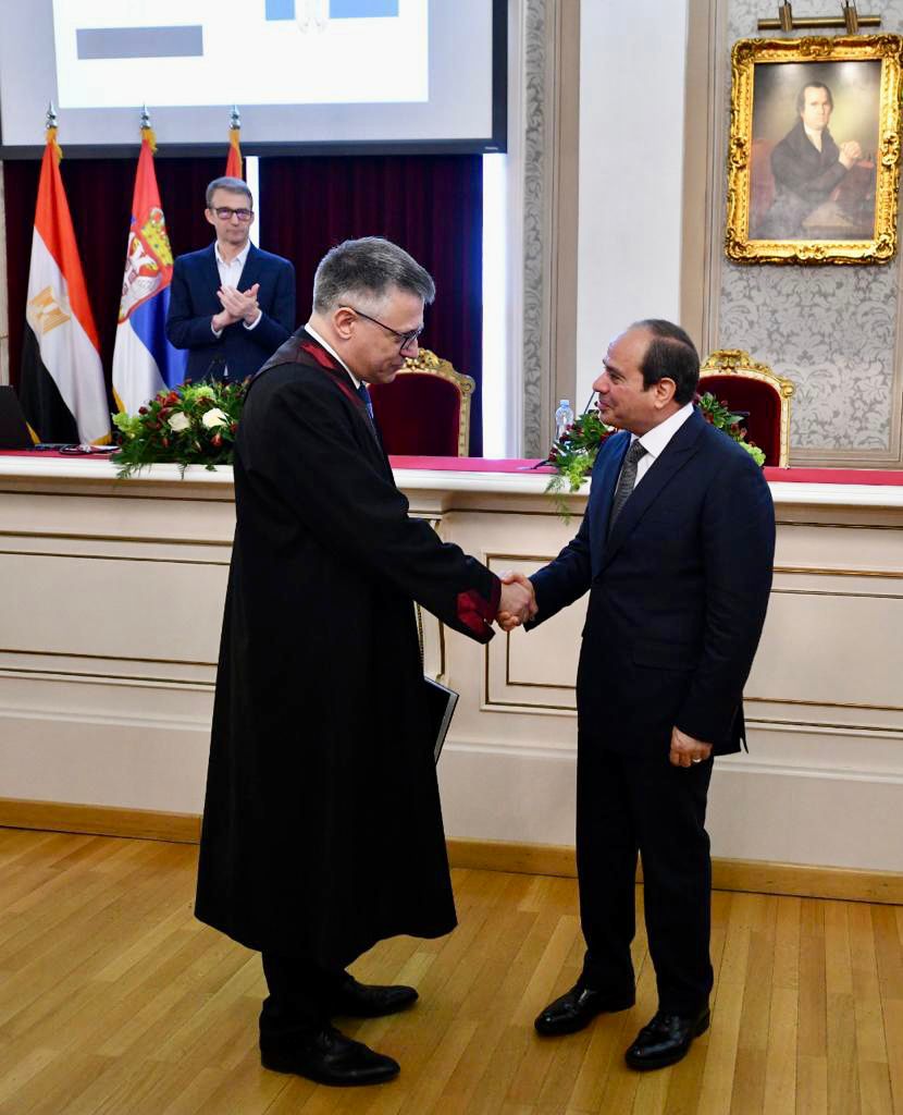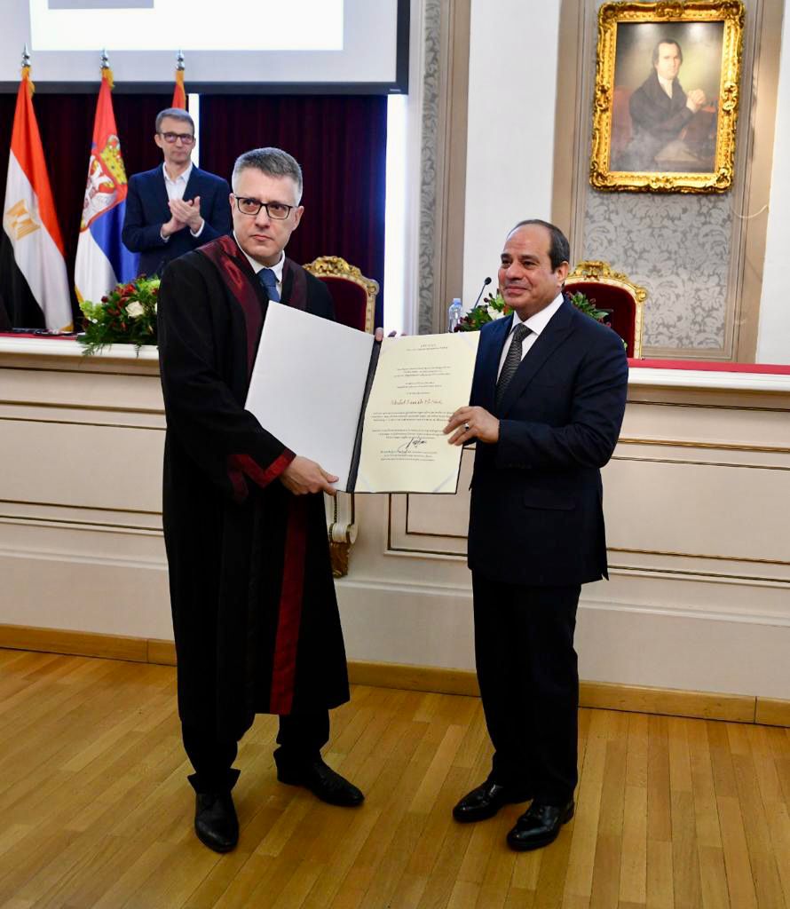 كما أكد السفير بسام راضي المتحدث الرسمى باسم رئاسة الجمهورية أنه في إطار زيارة الرئيس عبد الفتاح السيسي إلى العاصمة الصربية بلجراد، منحت جامعة بلجراد، إحدى أهم المؤسسات التعليمية في صربيا، درجة الدكتوراه الفخرية إلى الرئيس.