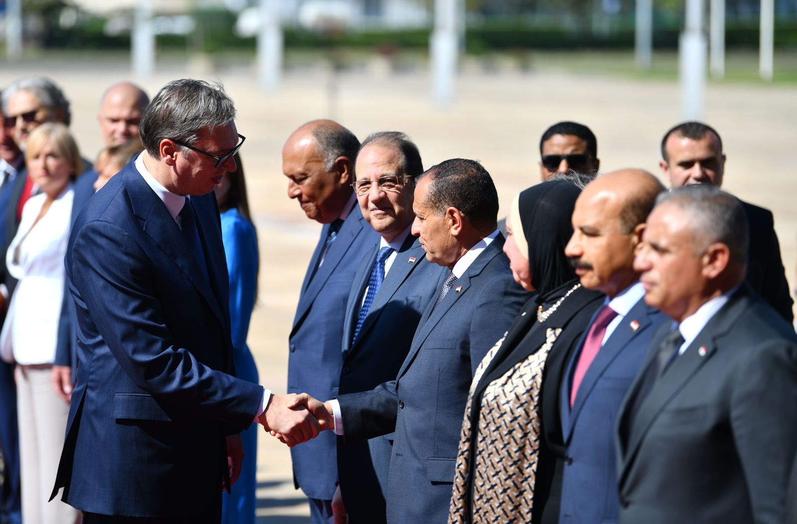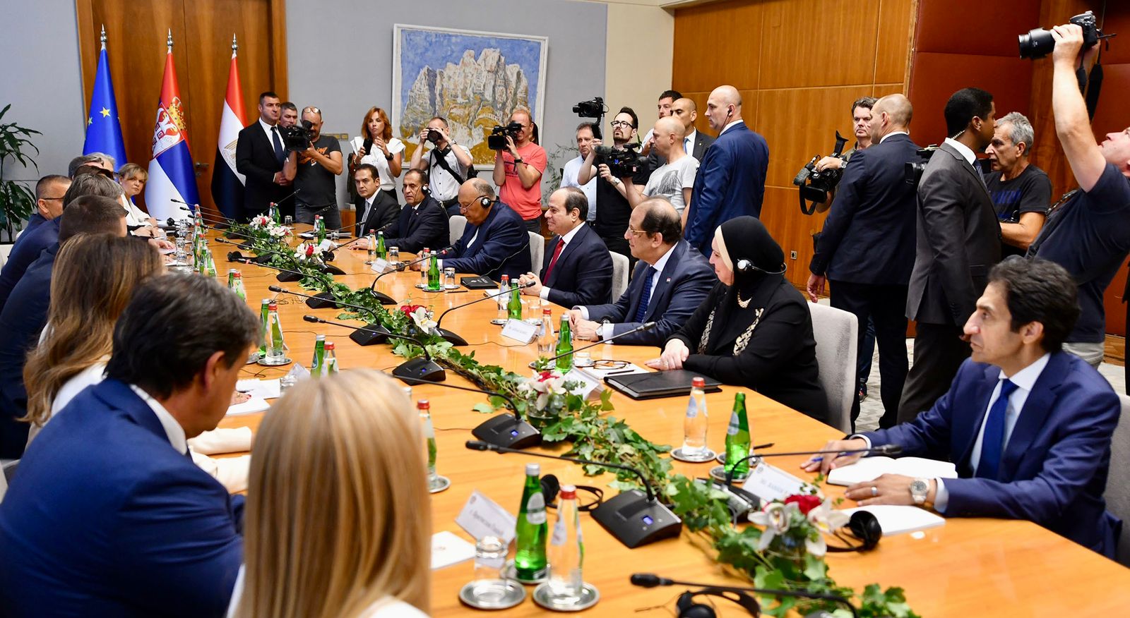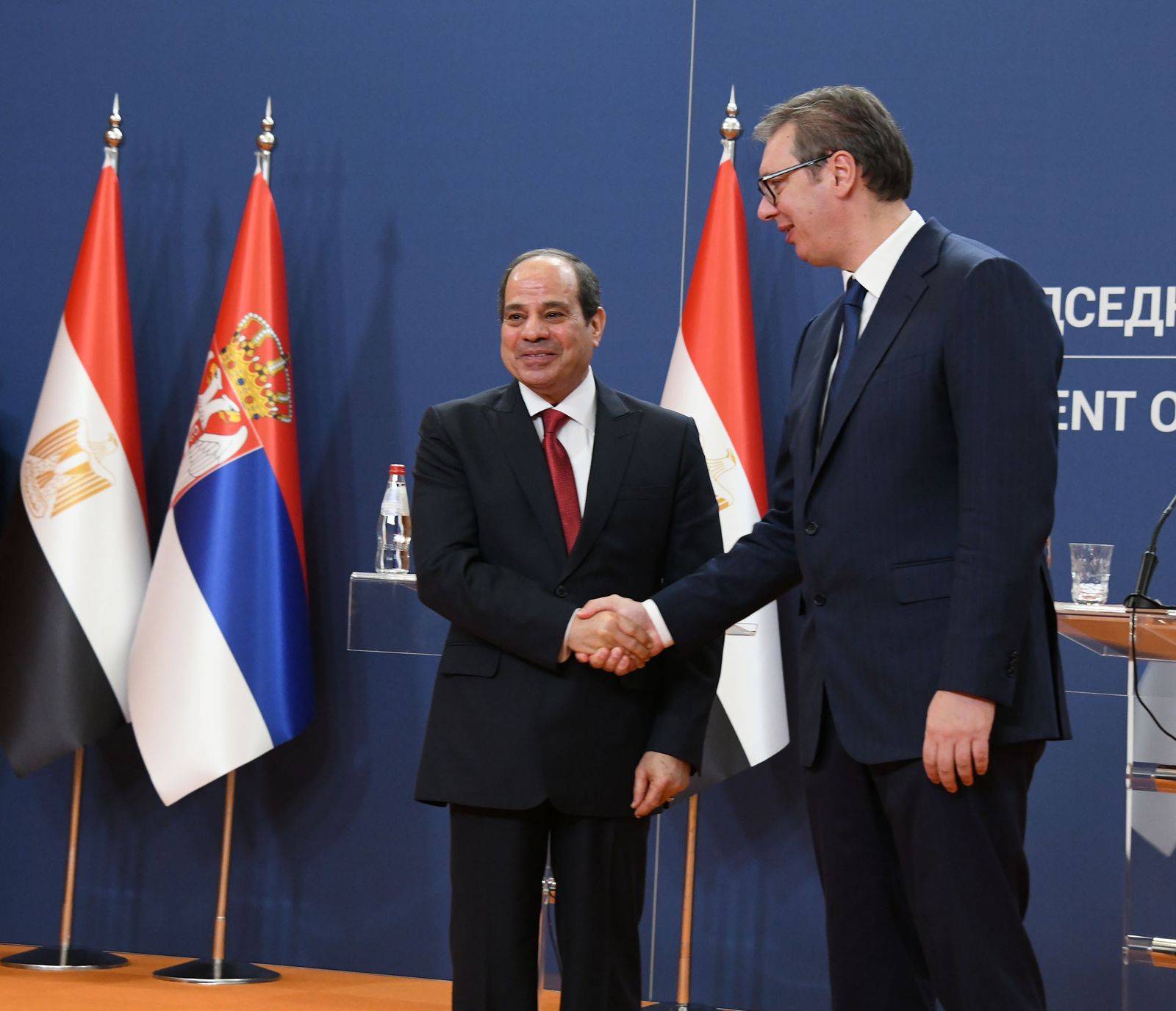 وصرح المتحدث الرسمي باسم رئاسة الجمهورية بأن الرئيس الصربي استهل اللقاء بالترحيب بالرئيس ضيفًا عزيزًا في صربيا للمرة الأولى، معربًا عن تقدير بلاده لمصر قيادةً وشعبًا، ومشيدًا بالعلاقات الثنائية الوثيقة التي تربط بين مصر وصربيا، مع تأكيد حرص بلاده على مواصلة الارتقاء بتلك العلاقات وتعزيز التعاون والتنسيق بين البلدين الصديقين على جميع المستويات، لاسيما في ضوء دور مصر المحوري كركيزة للاستقرار والأمن والسلام في الشرق الأوسط وأفريقيا.
